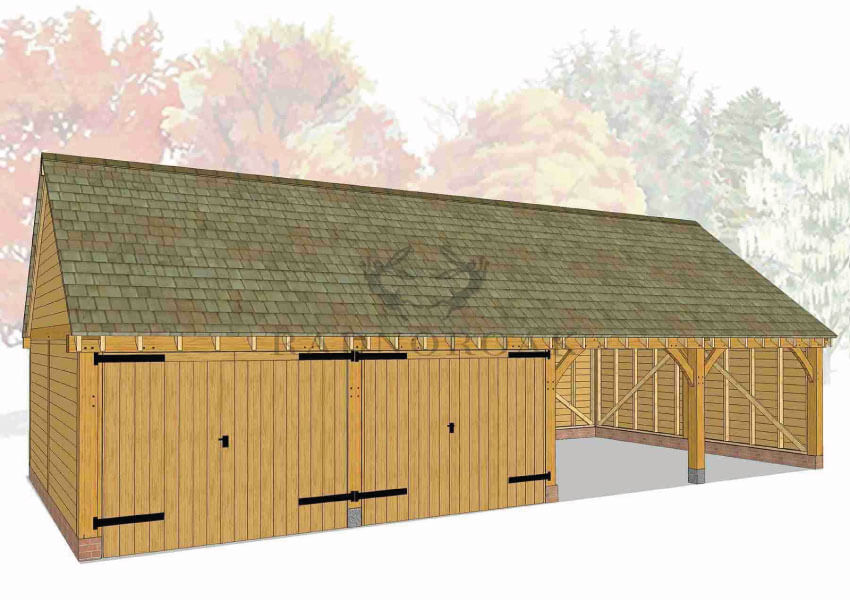 The Byton High Ridge is a single storey oak framed building available as a two bay, three bay or four bay building as standard (although we can manufacture as many bays as you require). If you require additional storage, the ridge height allows us to include deep oak tie beams and a first floor deck.