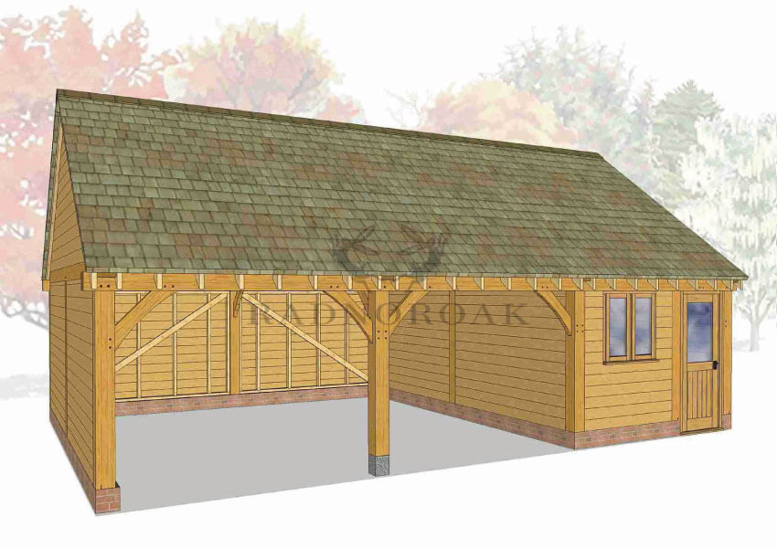 The generous 5.80m x 3m bays offer a multitude of uses, to include secure oak framed garages for classic cars or motorbikes, open fronted oak carports for family vehicles, workshops or garden machinery stores (very often a mix of these). If you are considering working from home, any of the bays can be incorporated as a home office or studio (we can supply oak flooring). A bike store, bin store or log store can easily be included to the sides or rear of the Byton High Ridge.