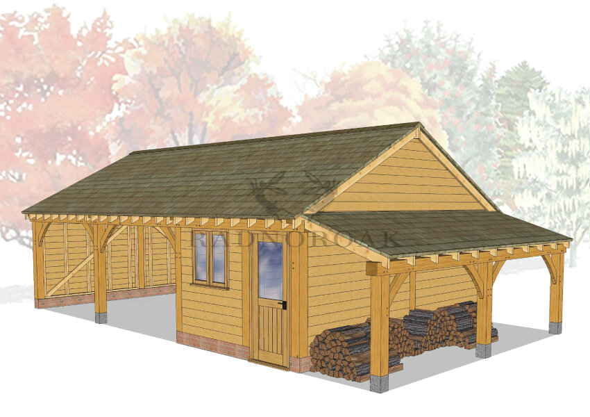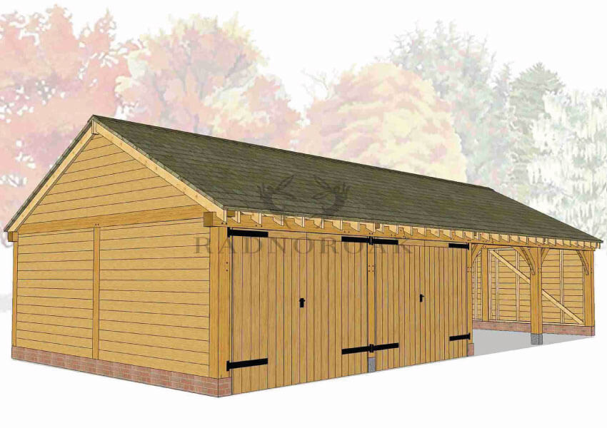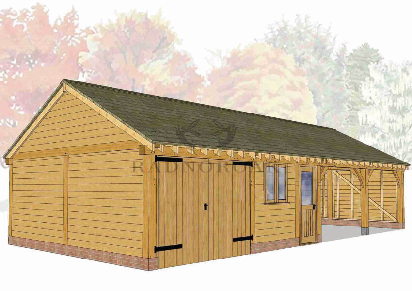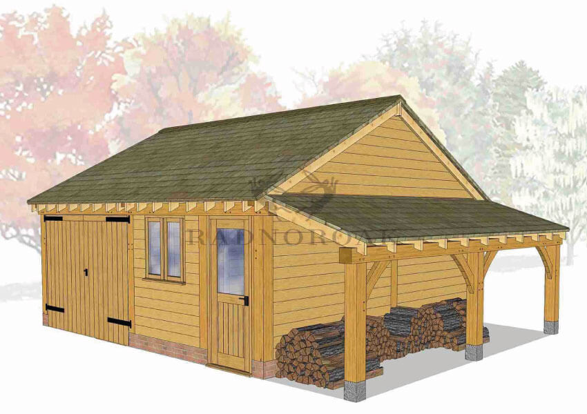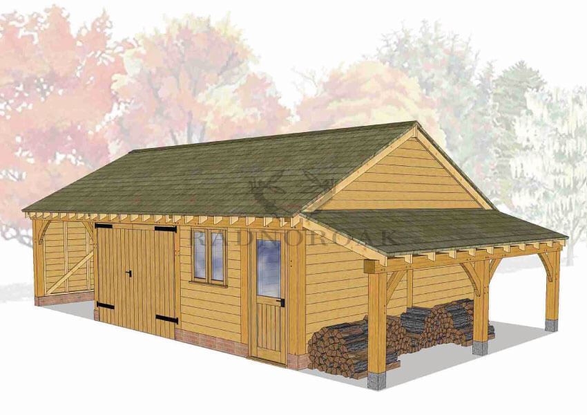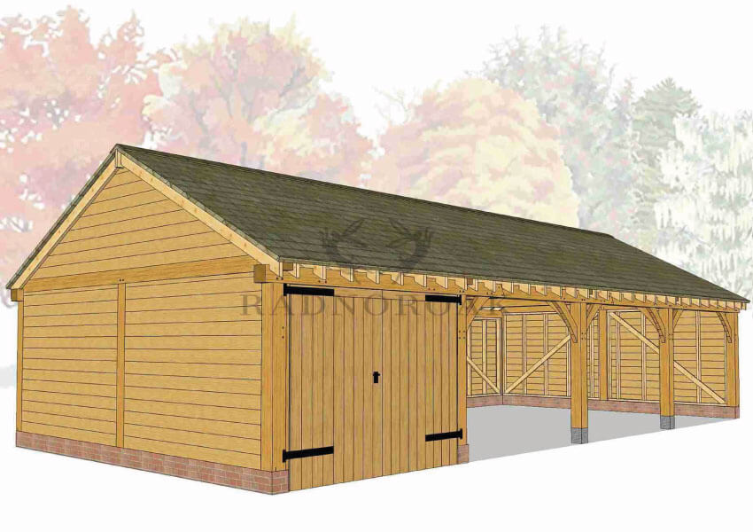 The generous 5.80m x 3m bays offer a multitude of uses, to include secure oak framed garages for classic cars or motorbikes, open fronted oak carports for family vehicles, workshops or garden machinery stores (very often a mix of these). If you are considering working from home, any of the bays can be incorporated as a home office or studio (we can supply oak flooring). A bike store, bin store or log store can easily be included to the sides or rear of the Byton Low Ridge.