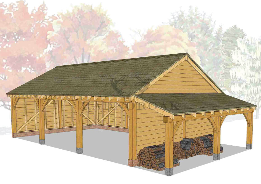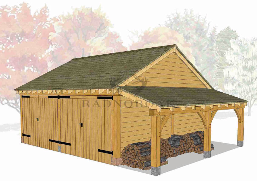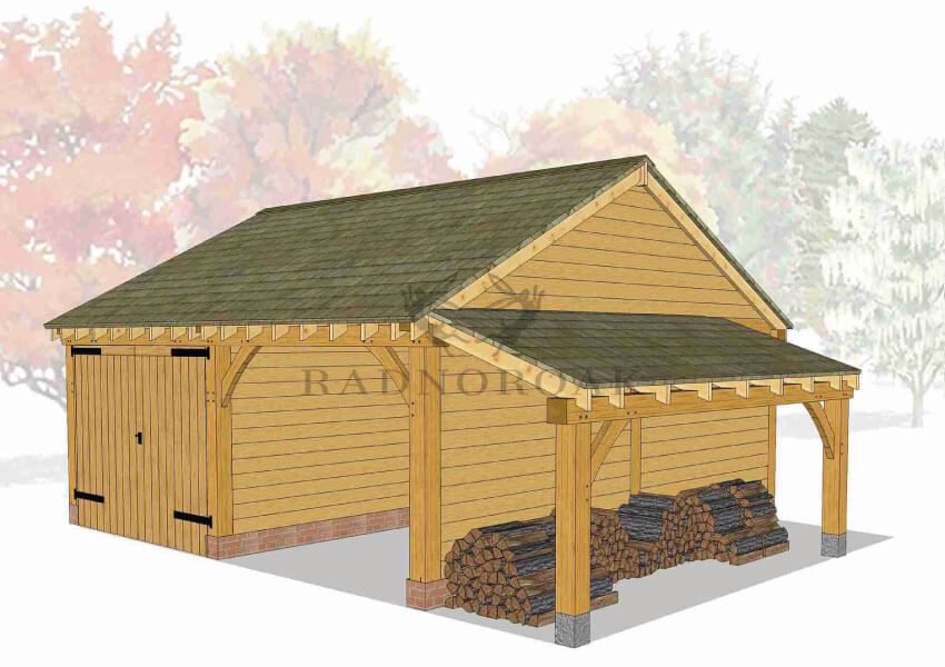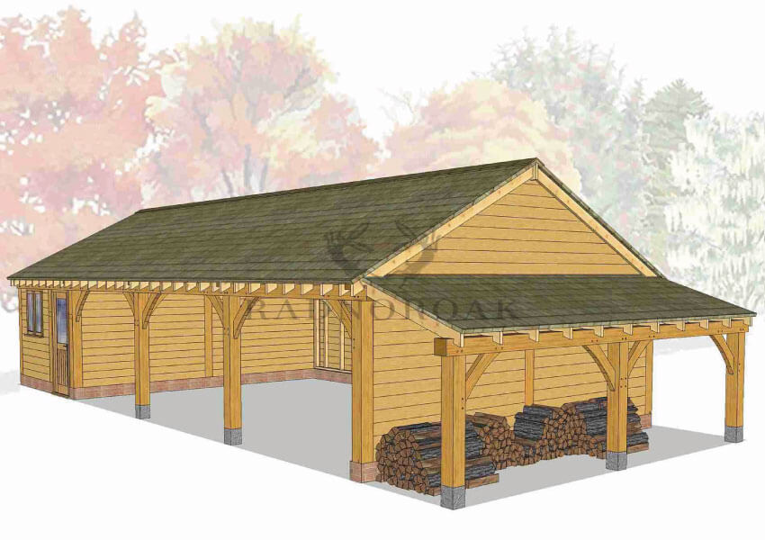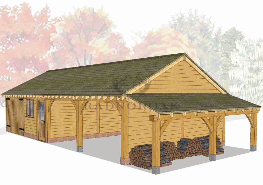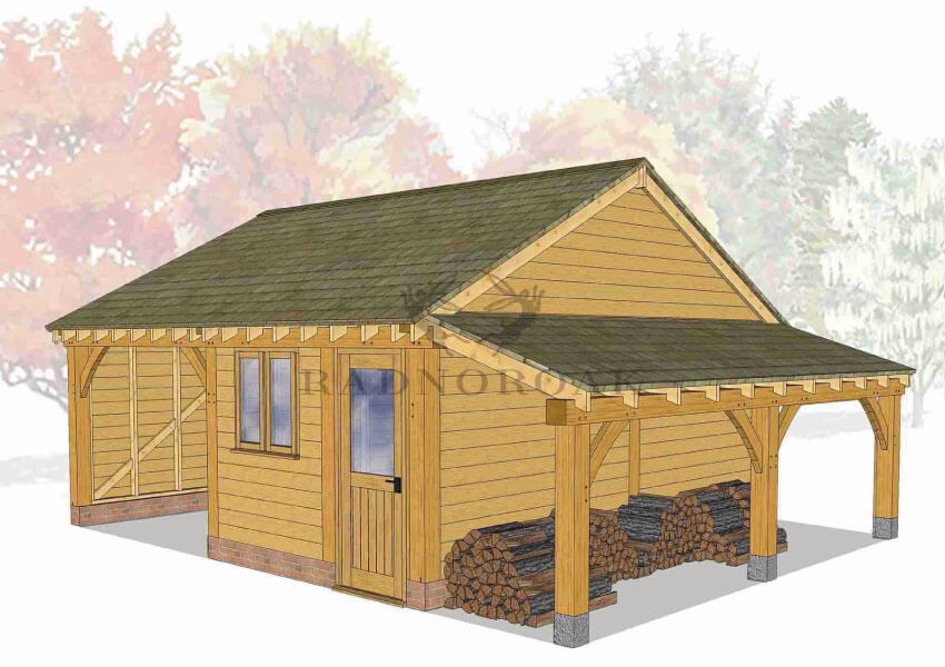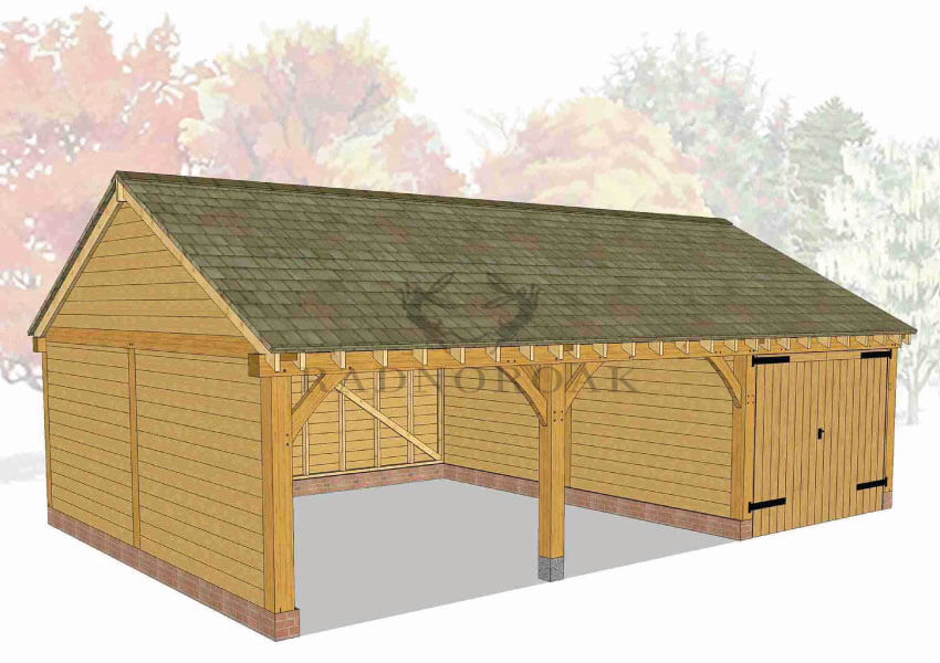 The generous 5.80m x 3m bays offer a multitude of uses, to include secure oak framed garages for classic cars or motorbikes, open fronted oak carports for family vehicles, workshops or garden machinery stores (very often a mix of these). If you are considering working from home, any of the bays can be incorporated as a home office or studio (we can supply oak flooring). A bike store, bin store or log store can easily be included to the sides or rear of the Byton Low Ridge.