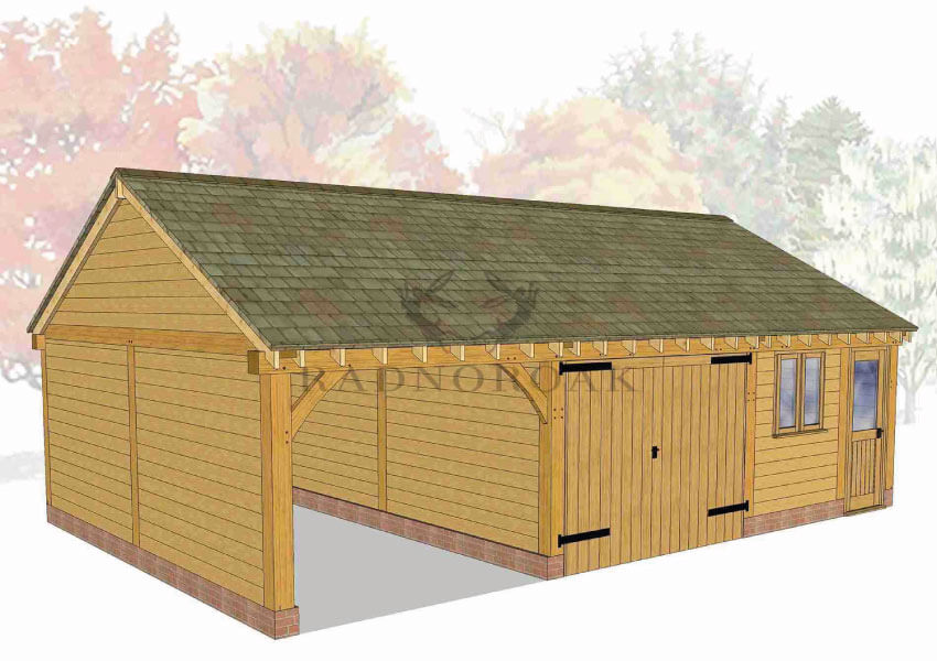 The Byton Low Ridge is a single storey oak framed garage or carport available as a two bay, three bay or four bay building as standard (although we can manufacture as many bays as you require).