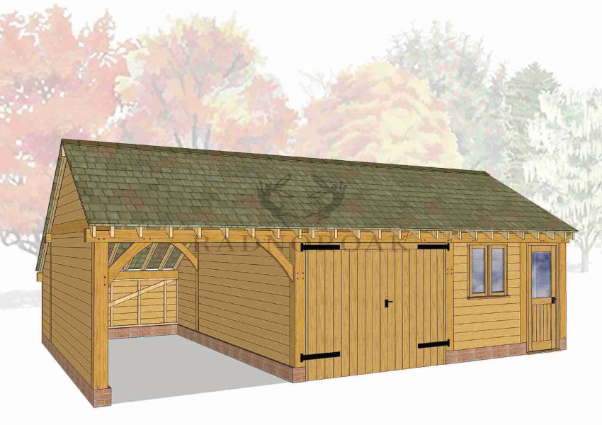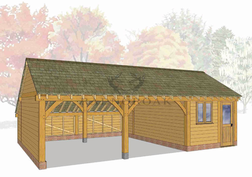 Additional options include incorporating home offices or studios, complete with engineered oak flooring. You can browse our standard configurations or get in touch to explore adding your own personal touch to this highly adaptable oak garage.