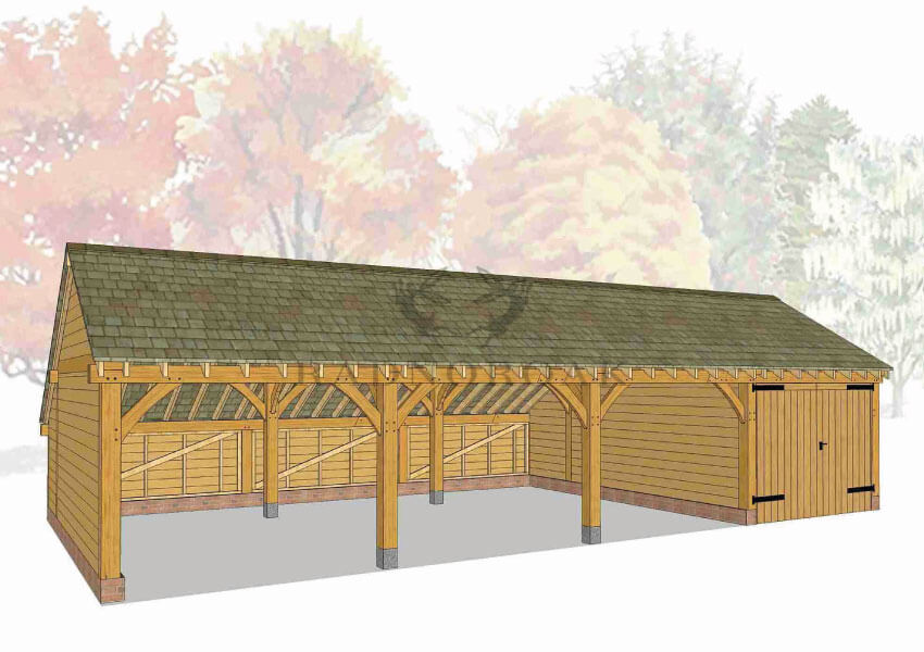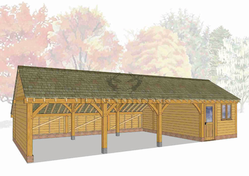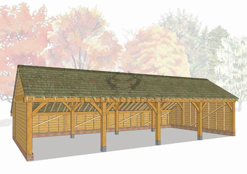 The Lucton is a single storey oak framed garage or carport available as a two bay, three bay or four bay building as standard (although we can manufacture as many bays as you require).