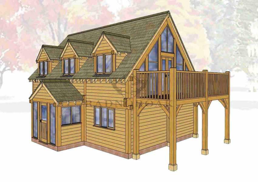 Park & Forest Lodges – everlasting & impressive oak framed lodges which improve with age. Customers admire the quality and character of exposed internal oak feature trusses and beams before walking through the glazed gable frames with French doors onto a veranda or balcony to capture views.