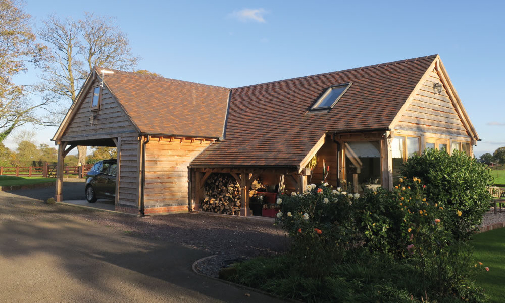3 Bay Oak Framed Carport & Garage In Shropshire.