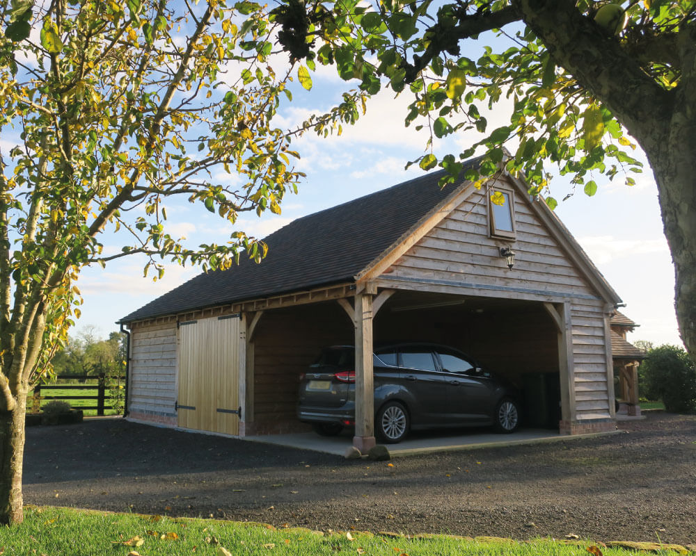 2 Bay Oak Framed Carport & Garage In Shropshire.