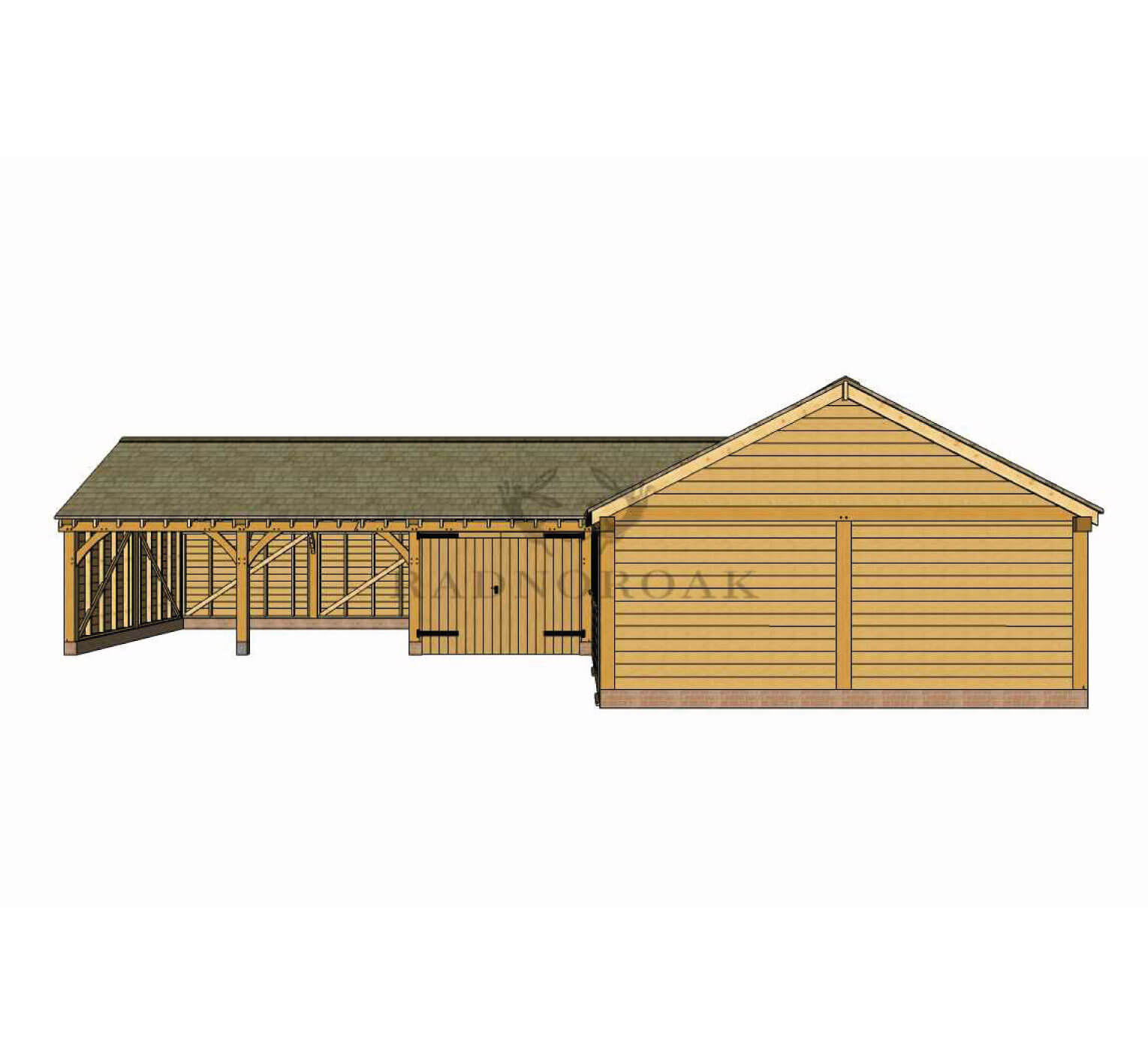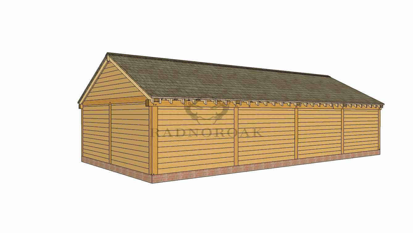 Handcrafted in our Mid-Wales workshop using premium oak and traditional mortice and tenon joints, the design features chunky oak posts, traditional knee braces, and premium featheredge cladding throughout. The open-fronted bays are perfect for housing vehicles, trailers, or firewood, while the enclosed sections offer secure storage for tools, garden machinery, or seasonal equipment.