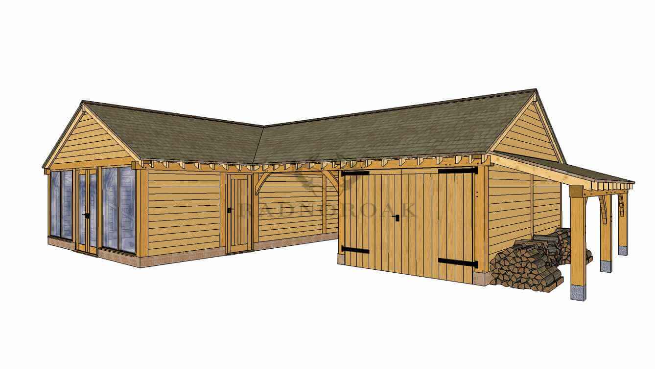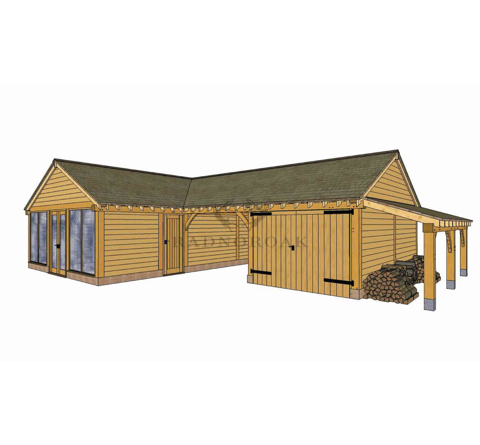 Based on our ‘room over’ building, The Norton, this fantastic oak framed building includes garaging/carports, stables, tack room, storage rooms, and a workshop on the ground floor. The lofted annexe is for guest accommodation, and there is even a potting shed leading to the raised garden.