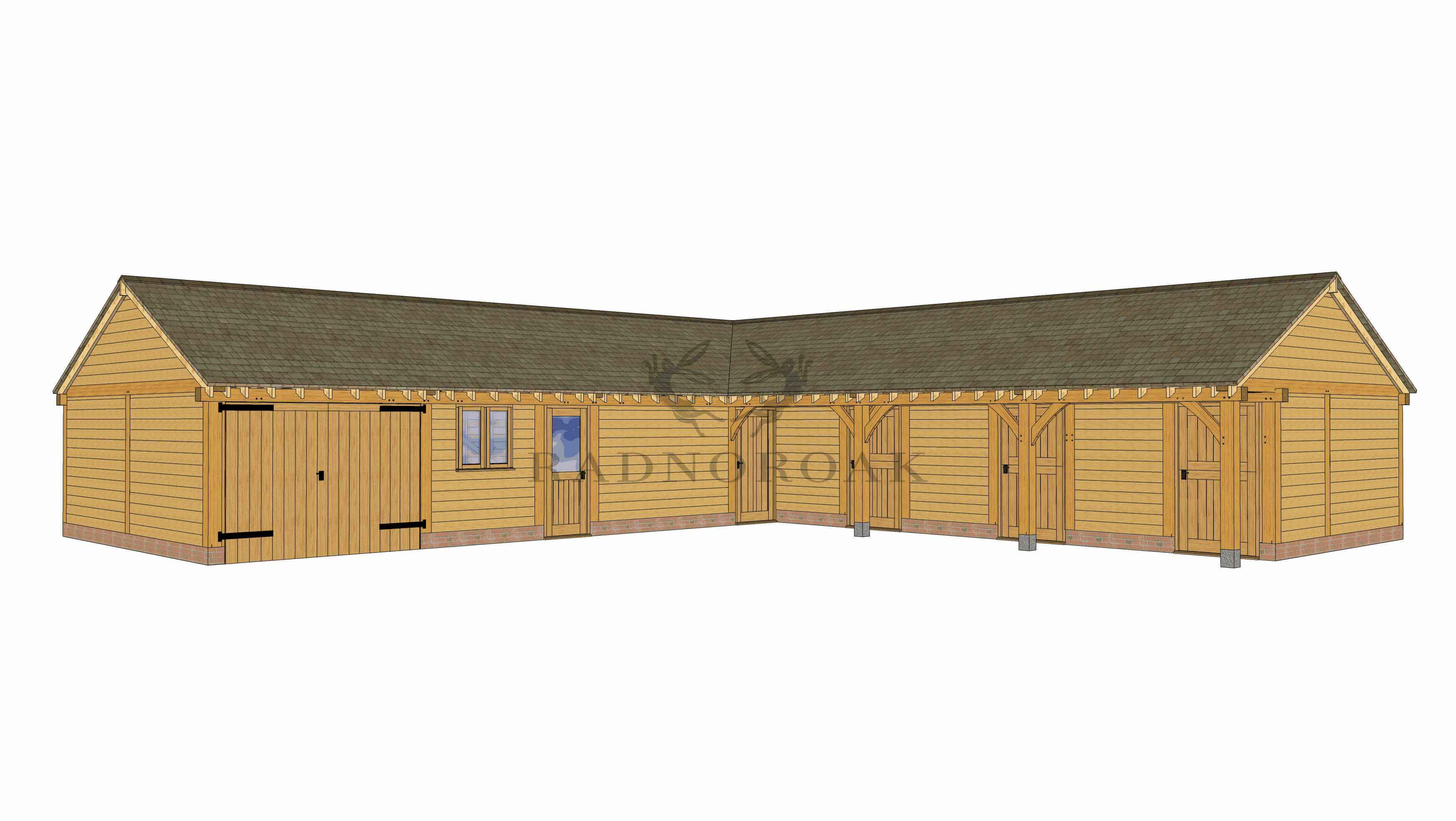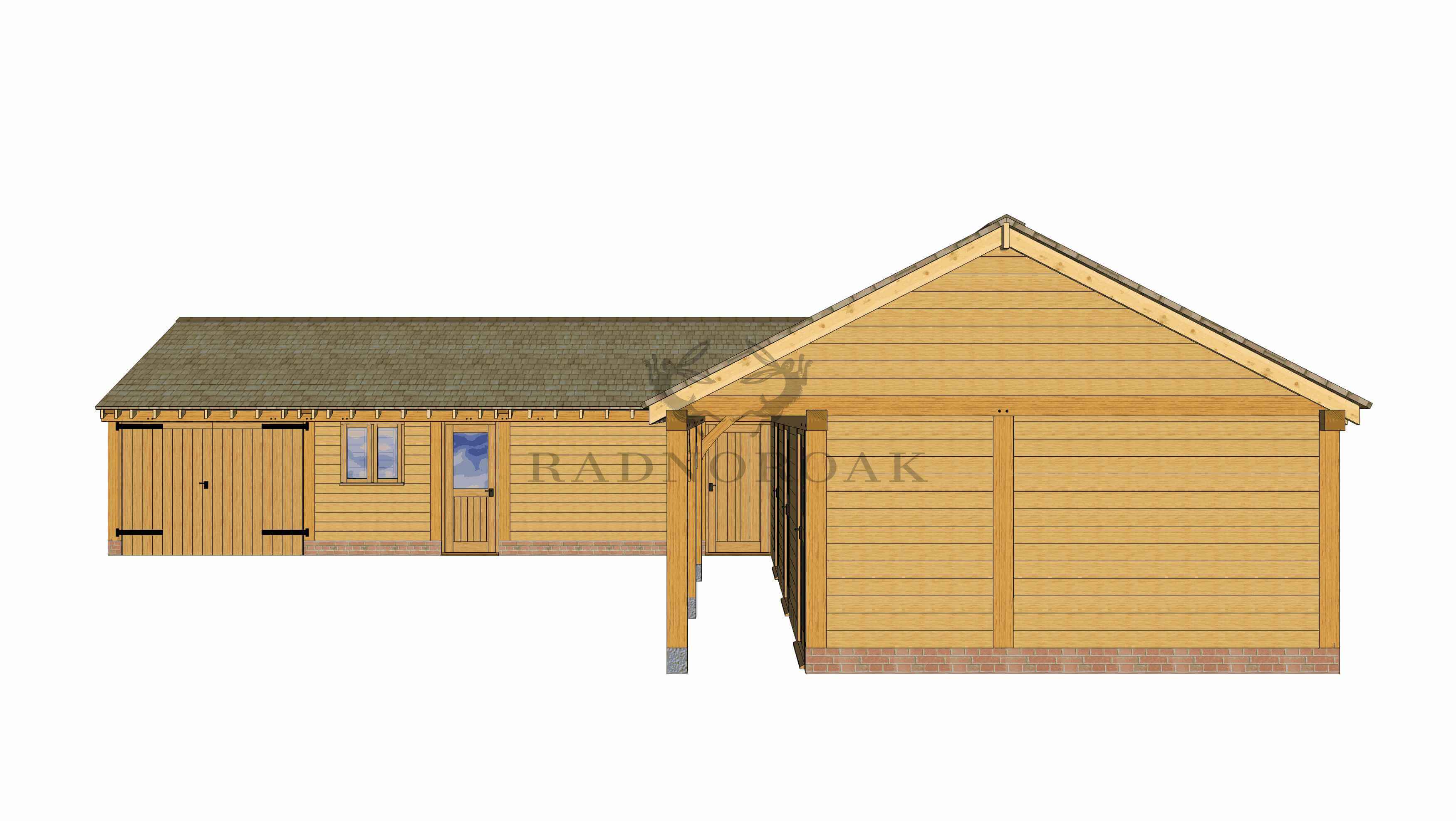 Based on our ‘room over’ building, The Norton, this fantastic oak framed building includes garaging/carports, stables, tack room, storage rooms, and a workshop on the ground floor. The lofted annexe is for guest accommodation, and there is even a potting shed leading to the raised garden.