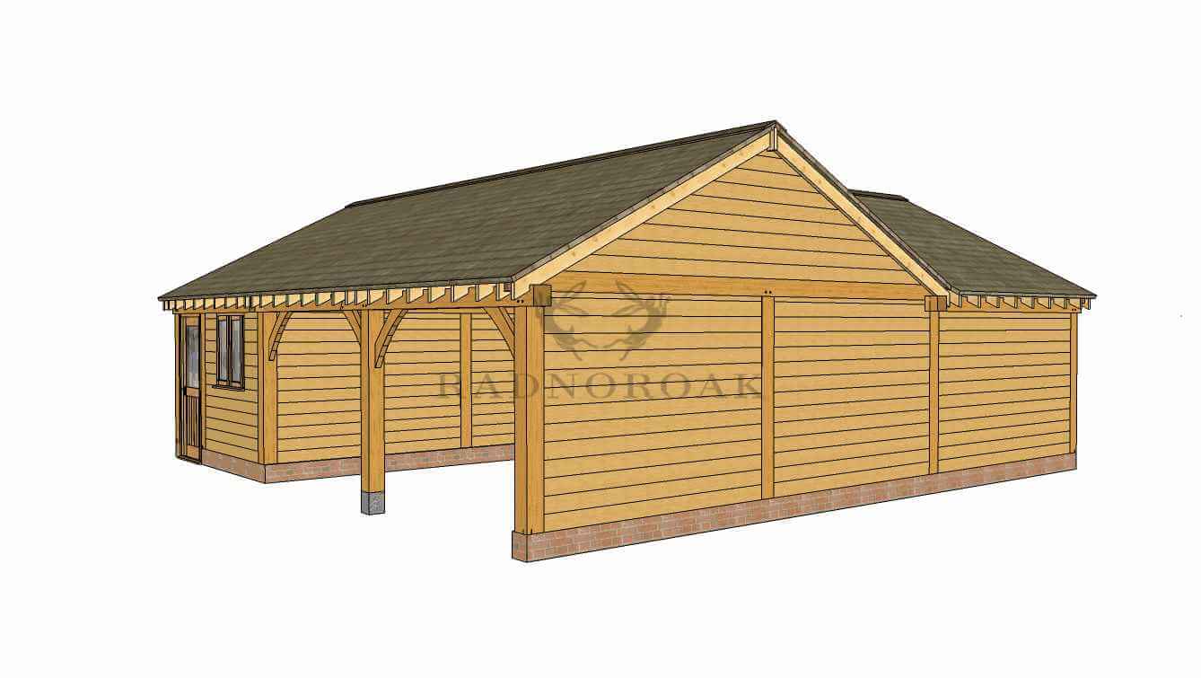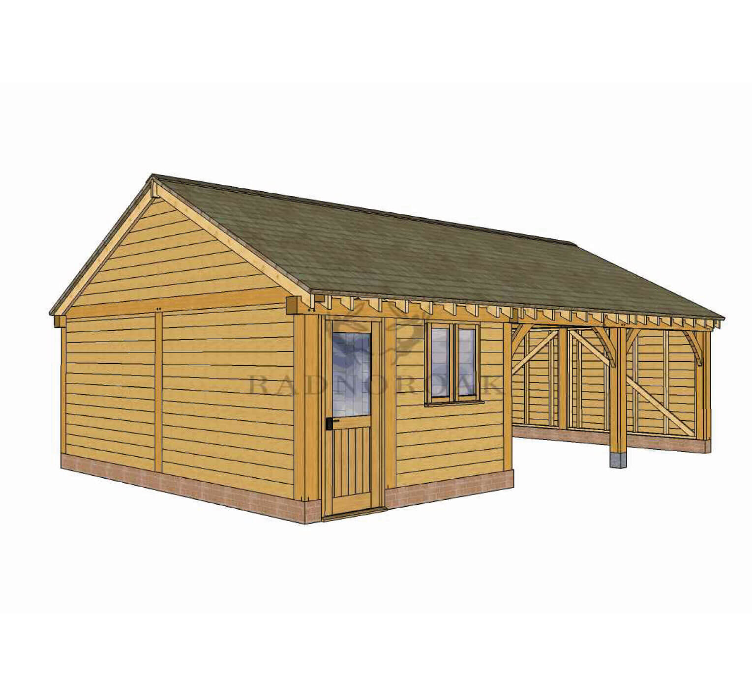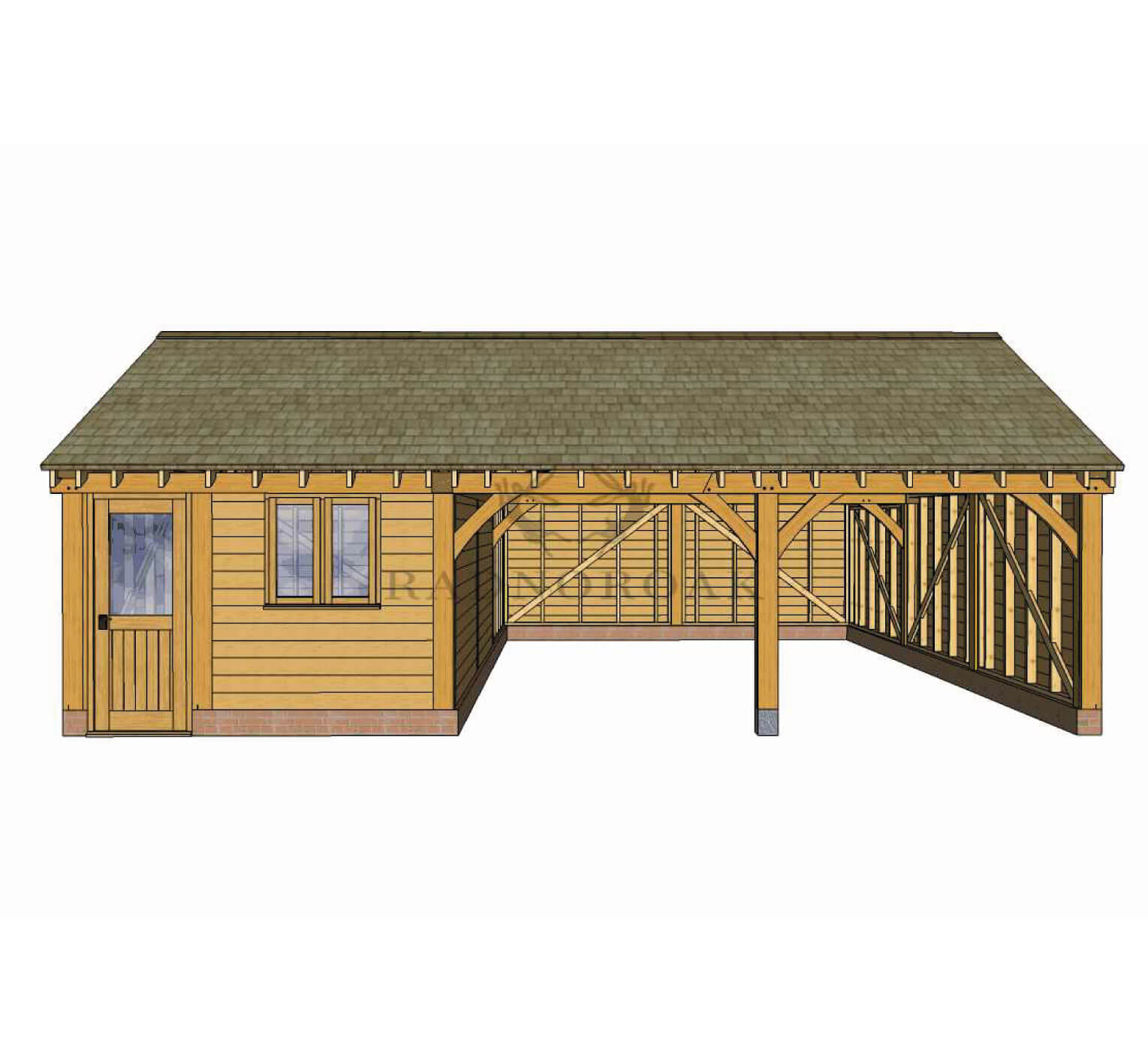 Based on our ‘room over’ building, The Norton, this fantastic oak framed building includes garaging/carports, stables, tack room, storage rooms, and a workshop on the ground floor. The lofted annexe is for guest accommodation, and there is even a potting shed leading to the raised garden.
