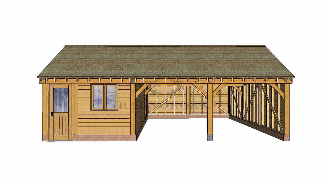 Our customer asked us to create a multi – purpose family building. A car port with storage above, a log store, a garden store, a music room, sun room and annexe all rolled into one fantastic oak framed building.