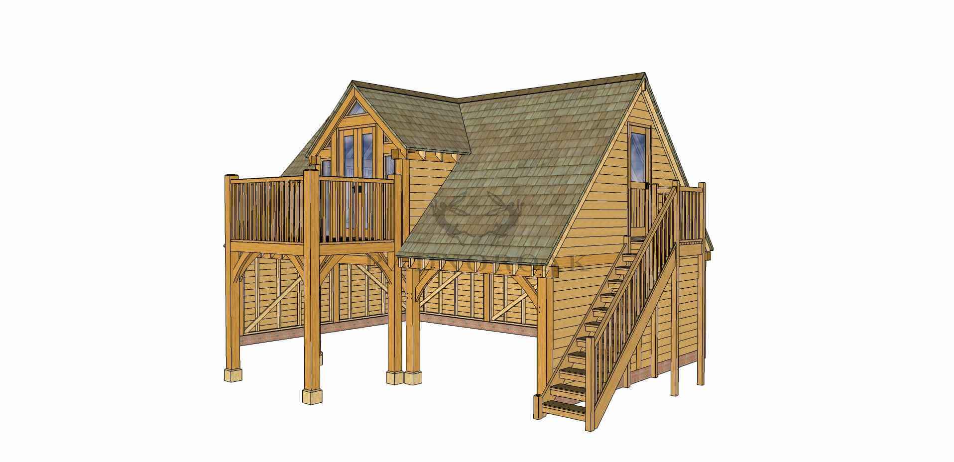 Crafted from premium oak using traditional mortice and tenon joints, the structure features Radnor Oak’s signature chunky posts, exposed trusses, and solid oak balustrades. The dormer adds character to the upper level, while the balcony provides a light-filled space for morning coffee, reading, or relaxing in the open air.