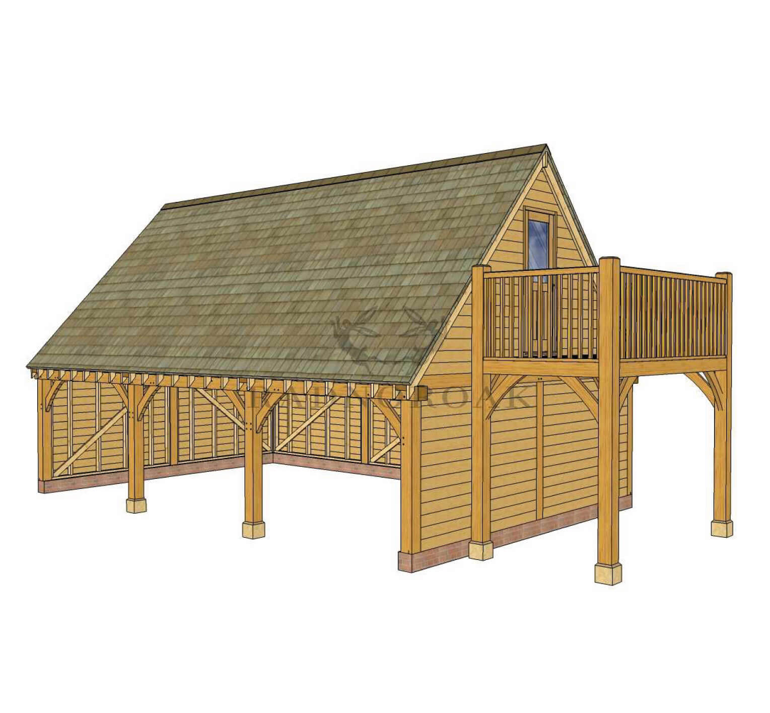 The NGB2 is a compact oak framed balcony featuring a striking gable end and covered space beneath - designed to bring the outside in. Whether used as a quiet retreat, a seating area, or even a raised herb garden, this structure adds charm and versatility to our Norton lofted garage.