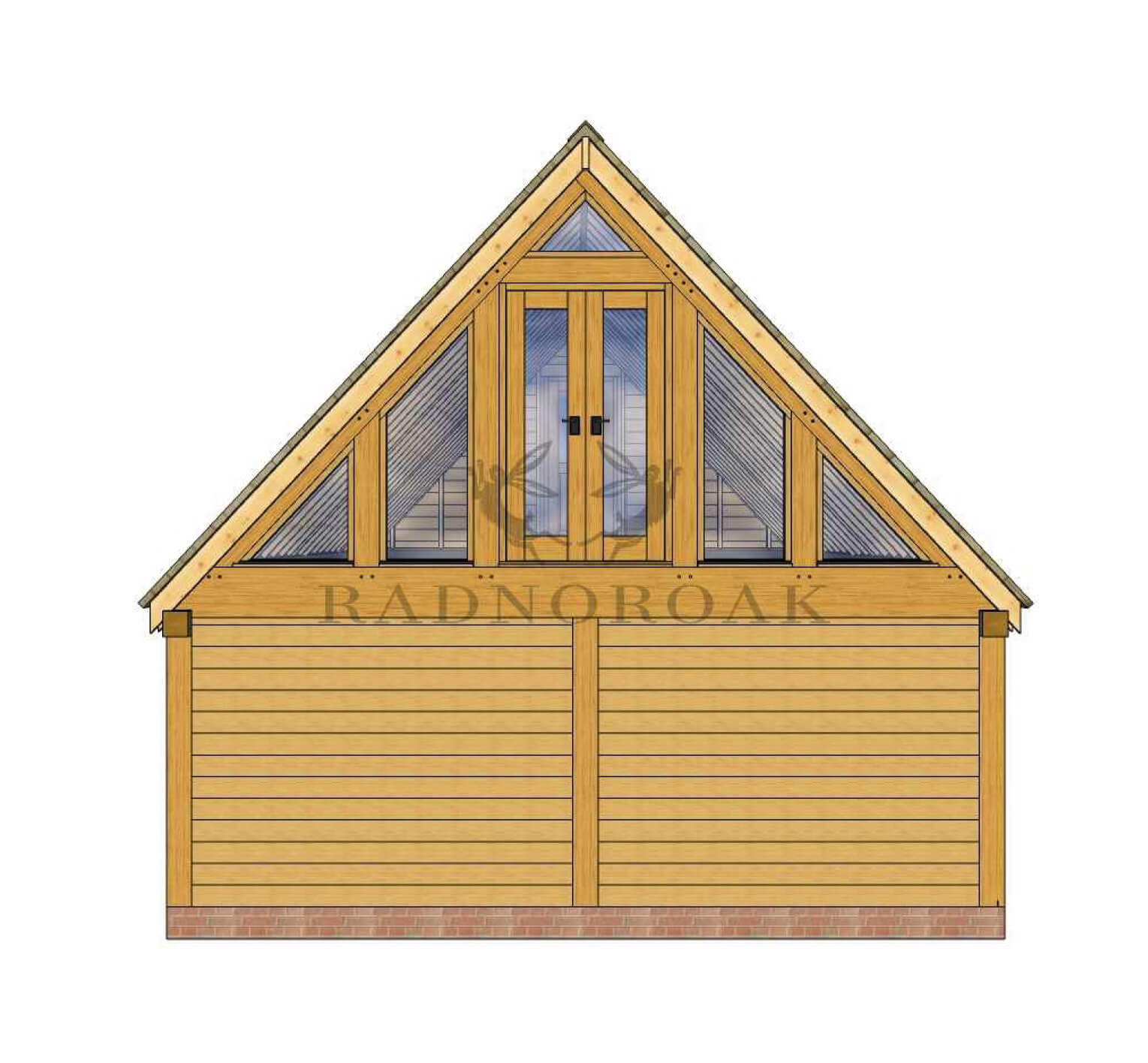Crafted in our Mid-Wales workshop, this glazed gable is designed to maximise natural light while maintaining the strength and character of premium-grade oak framed buildings. It features carefully positioned glazing panels framed by chunky oak detailing - a perfect fit for our two storey building, The Norton.