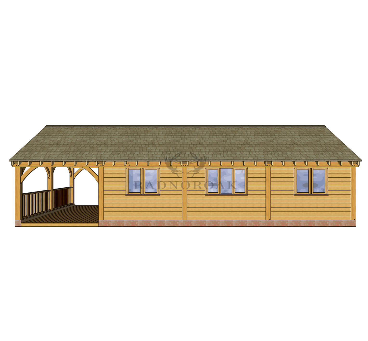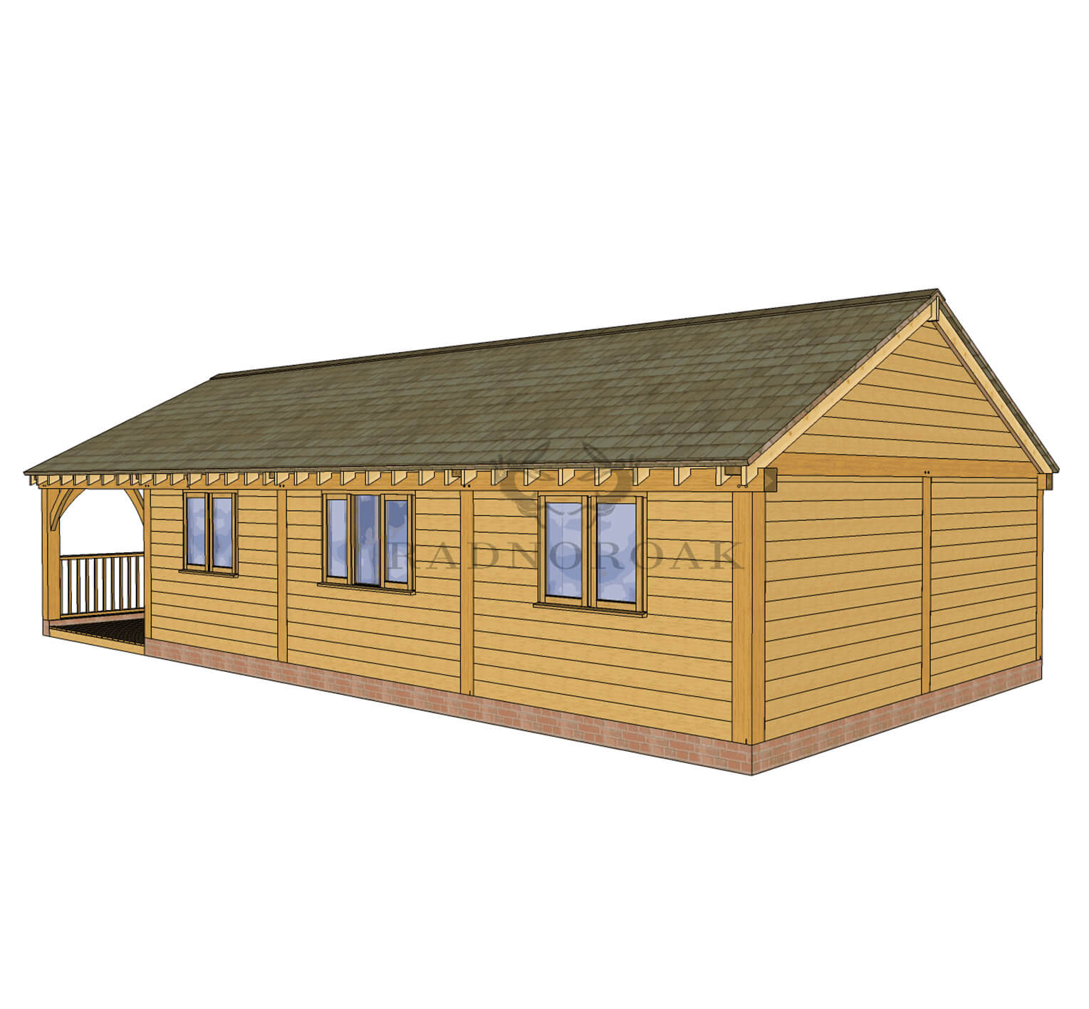 This oak framed garden annexe offers a flexible single-storey layout, ideal for independent living, guest accommodation, or as a self-contained holiday let. With an open-fronted oak veranda to one side and a fully enclosed living layout to the other, this design balances function and privacy.