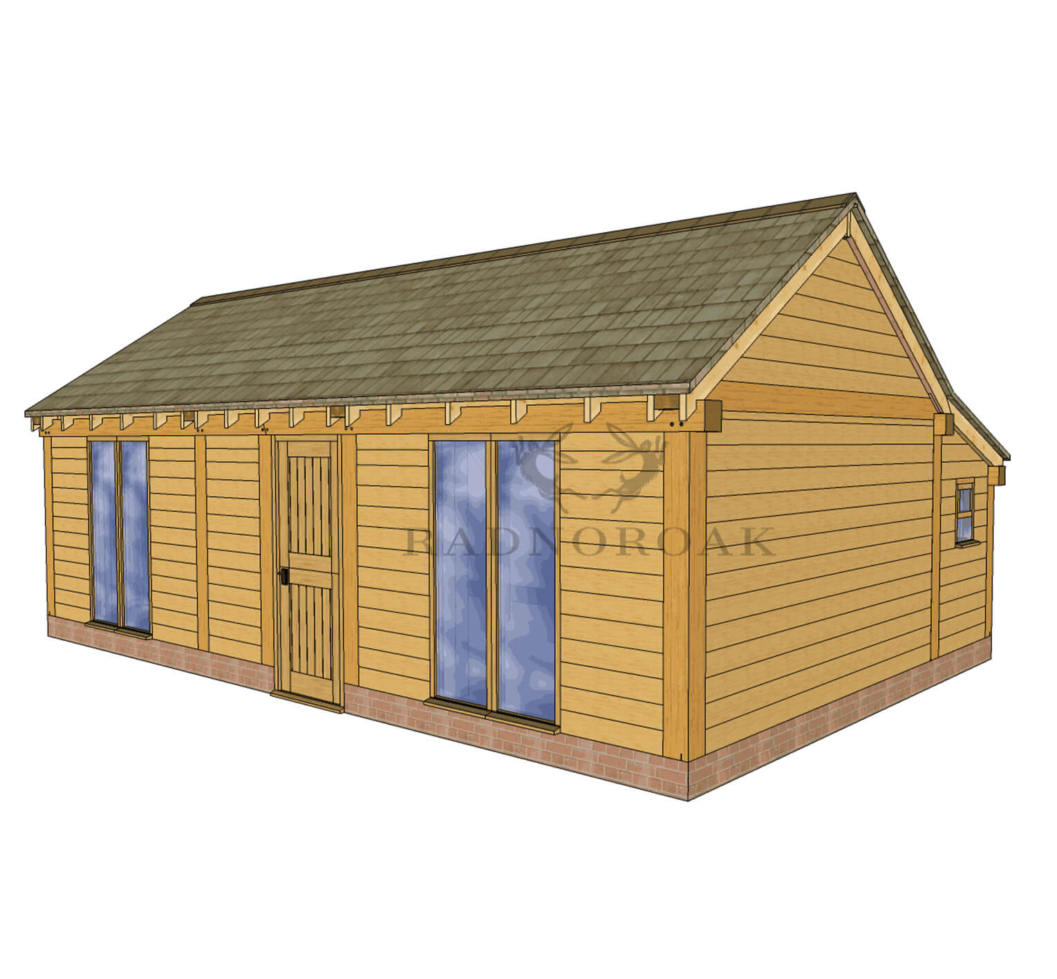 Handcrafted in our Mid-Wales workshop using premium oak and traditional mortice and tenon joints, the structure features chunky oak posts, premium featheredge cladding, and multiple glazed doors and windows to create a bright, inviting interior. Whether used as a granny annexe, staff housing, or Airbnb-ready garden lodge, the internal layout can be tailored to suit your needs.