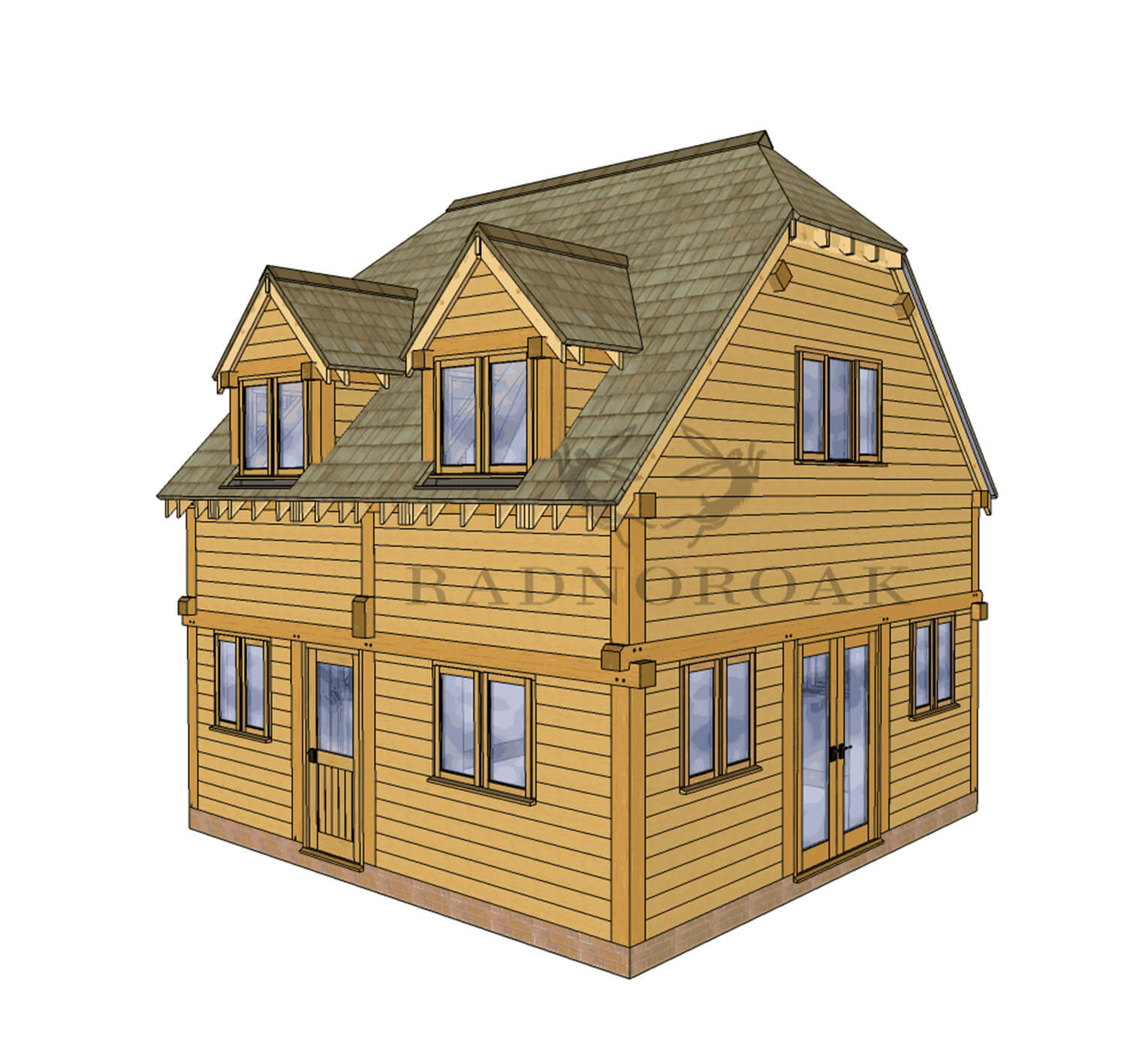 The Oak Framed Cottage ANX-BR2002 is a gem from Radnor Oak's collection with its striking oak dormers and porch. Made with the highest grade oak in our own workshop, this cottage exudes stunning quality. Whether you see it as a Granny Annexe, Guest Accommodation, or Staff Accommodation, its versatility meets varied needs.