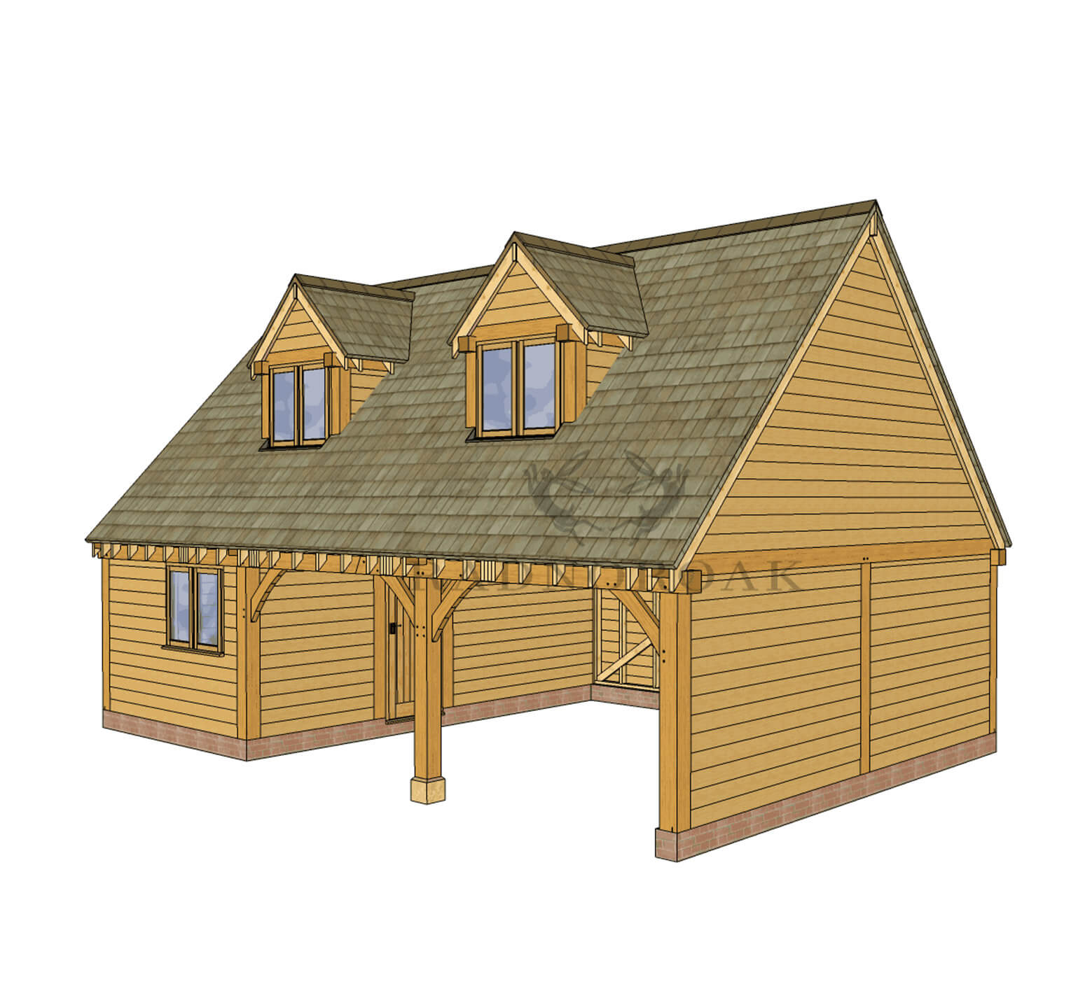 Crafted in our Mid-Wales workshop premium oak and traditional mortice and tenon joints, every element is built for lasting performance and timeless appeal. Chunky oak posts and beams create structural character, while premium featheredge cladding and a 2 open bays for vehicle housing give this building a unique and premium appeal.