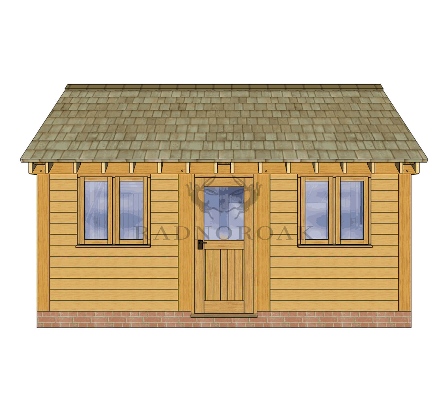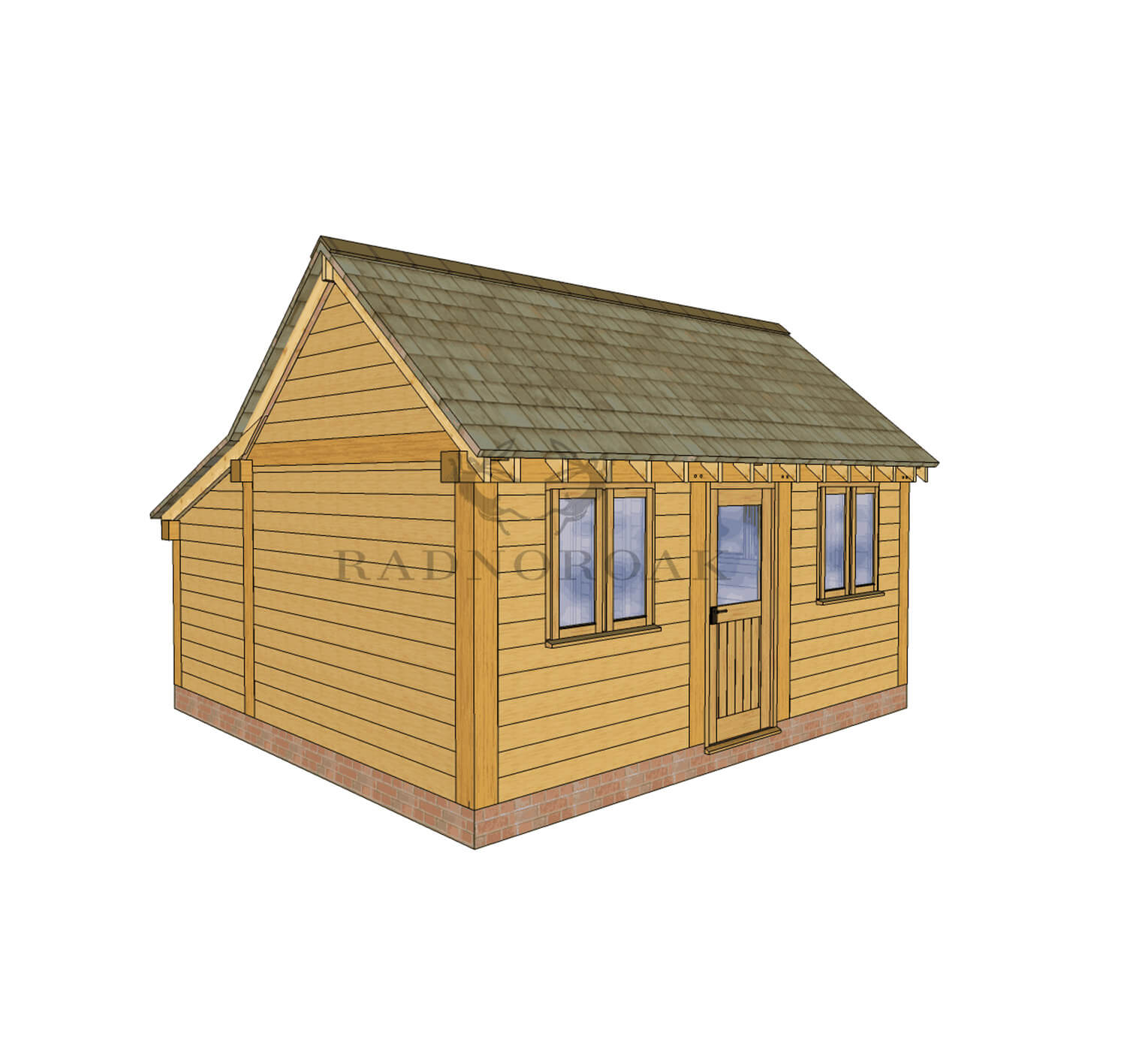 Crafted in our Mid-Wales workshop using premium oak and traditional mortice and tenon joints, the structure features chunky oak posts, premium featheredge cladding, and classic joinery with double glazed windows and a central entrance door. The pitched gable roof offers ample internal height and can be finished with cedar shingles, slate, or clay tiles to suit your site.