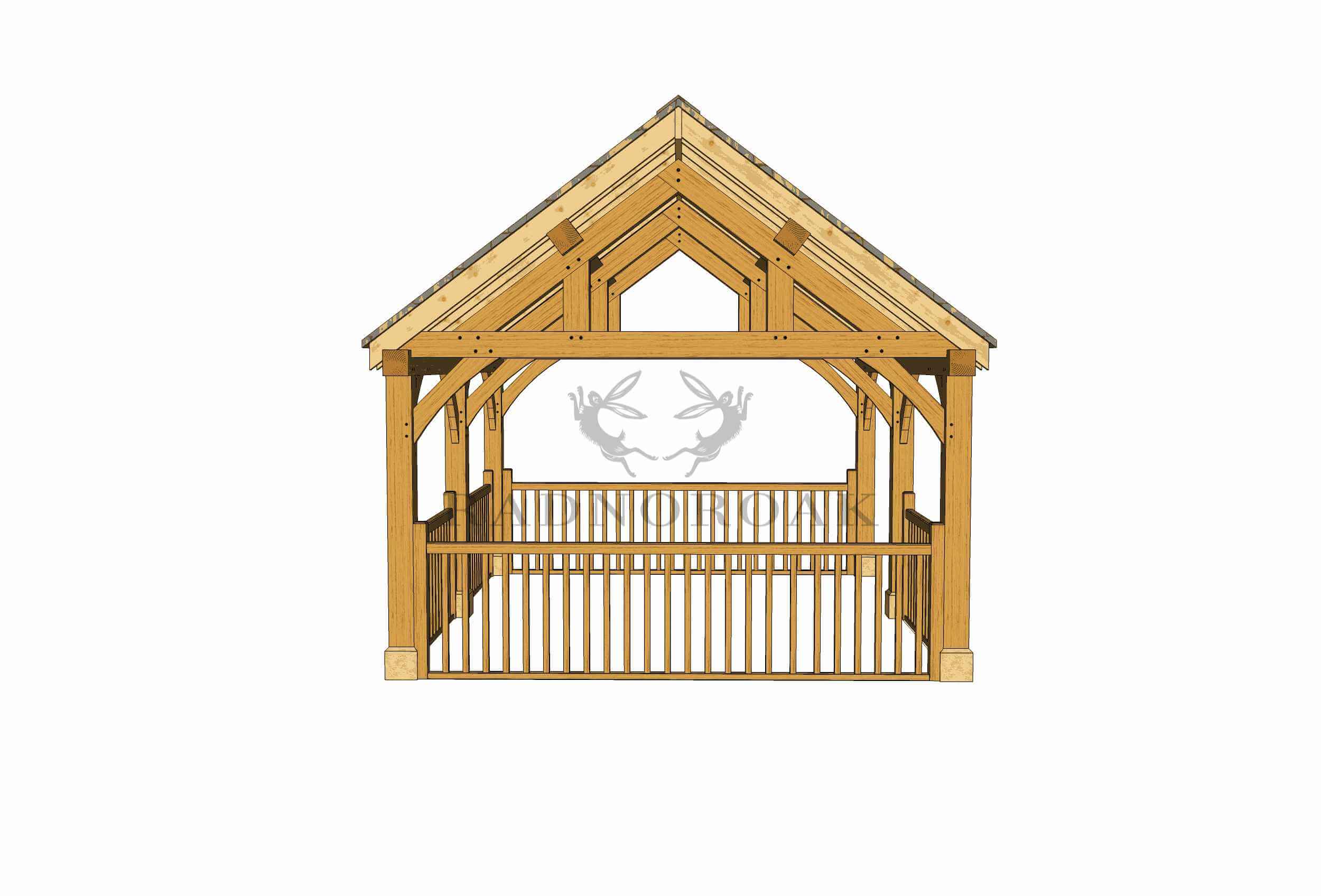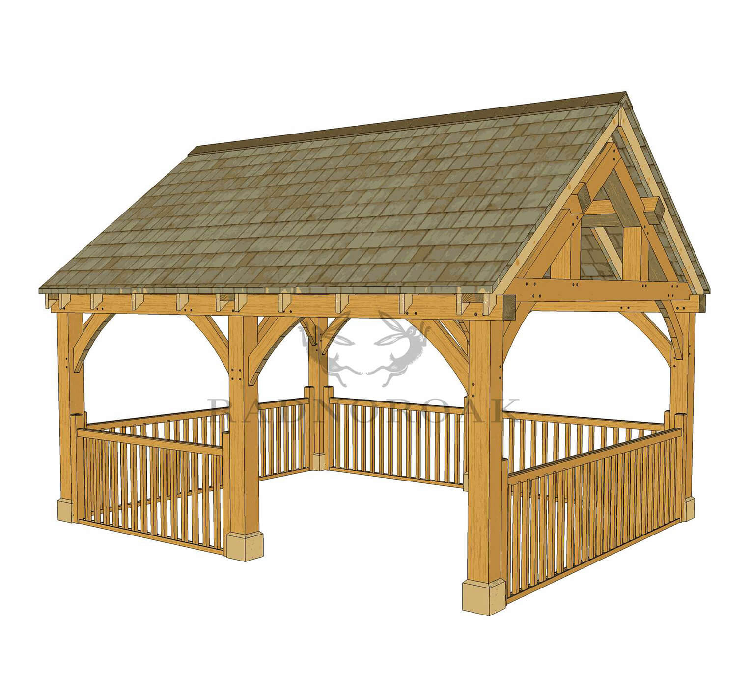The PM007 oak framed garden pavilion is a stunning outdoor shelter, handcrafted from premium oak and traditionally jointed for long-lasting strength. Featuring decorative balustrades, handcrafted king post oak trusses, and sturdy knee braces, this open-sided structure is designed to be the centrepiece of the garden.