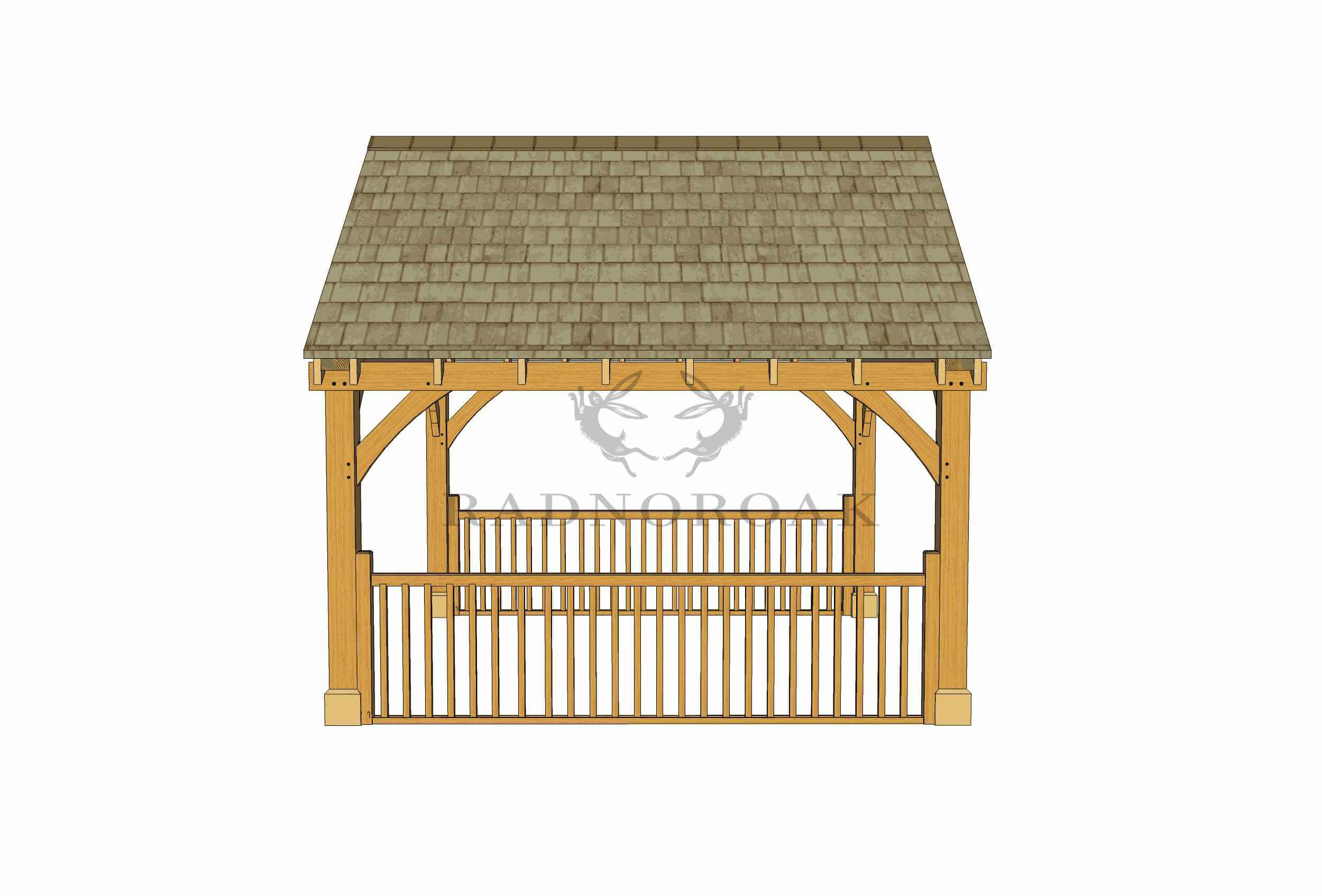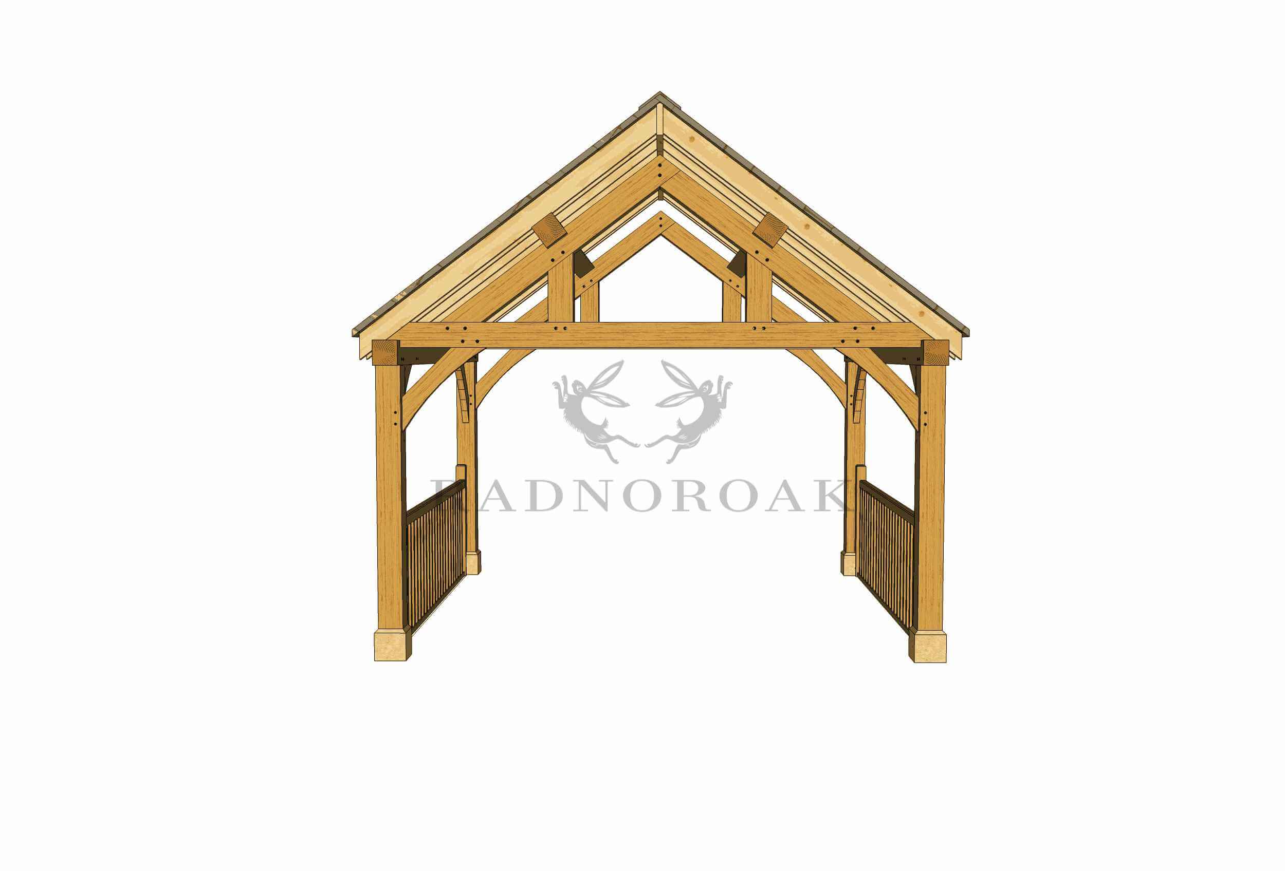 Introducing the Oak Framed Garden Pavilion from Radnor Oak, catalogue PS004. The structure comes pre-joined, with Radnor Oak having ensured a traditional oak frame including trusses, purlins, and knee braces. Moreover, roof carpentry is part of the package. Customise your pavilion with roofing options including Cedar shingle, slate, or tiled roof. Supplement your kit with Staddle Stones featuring stainless steel pins.