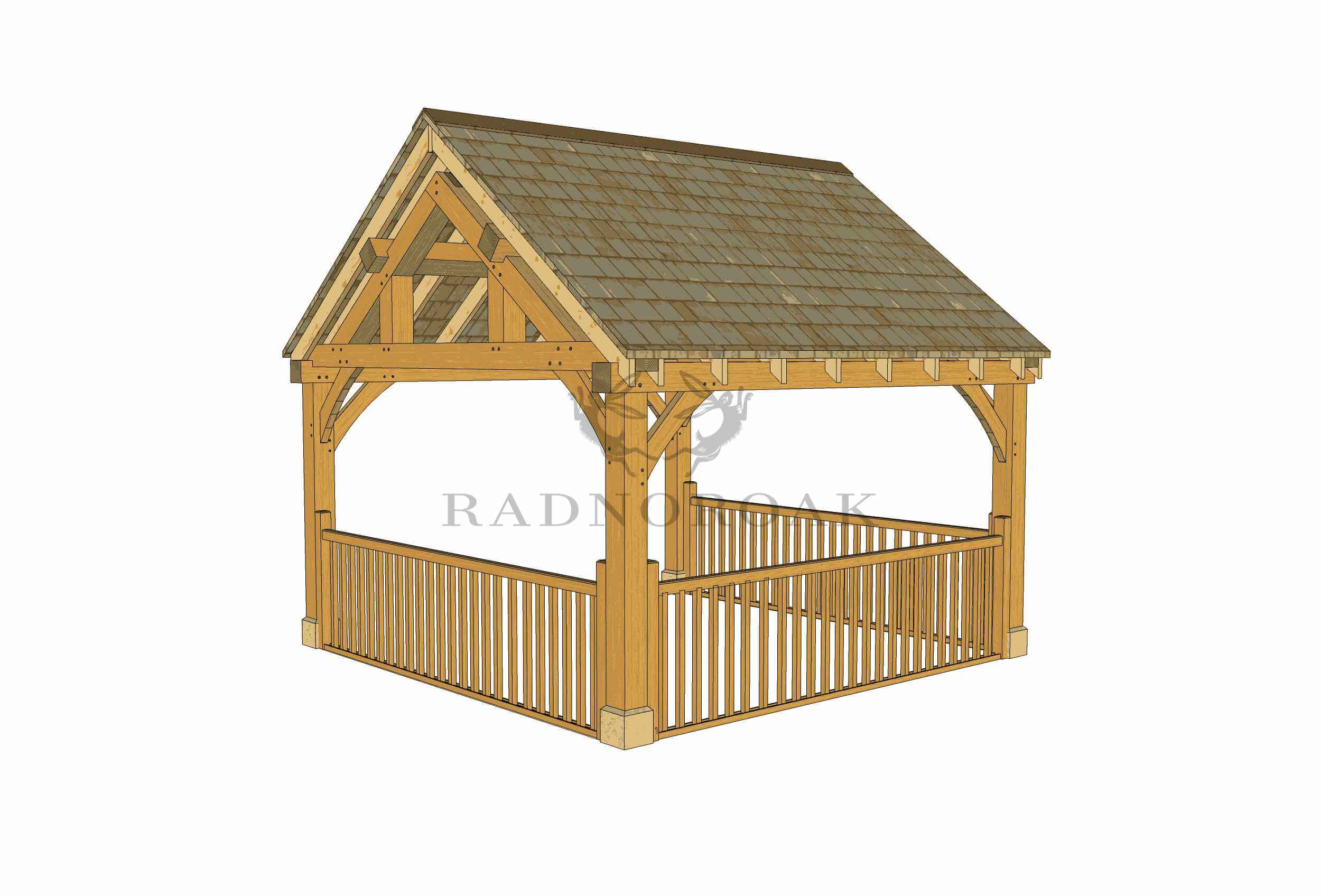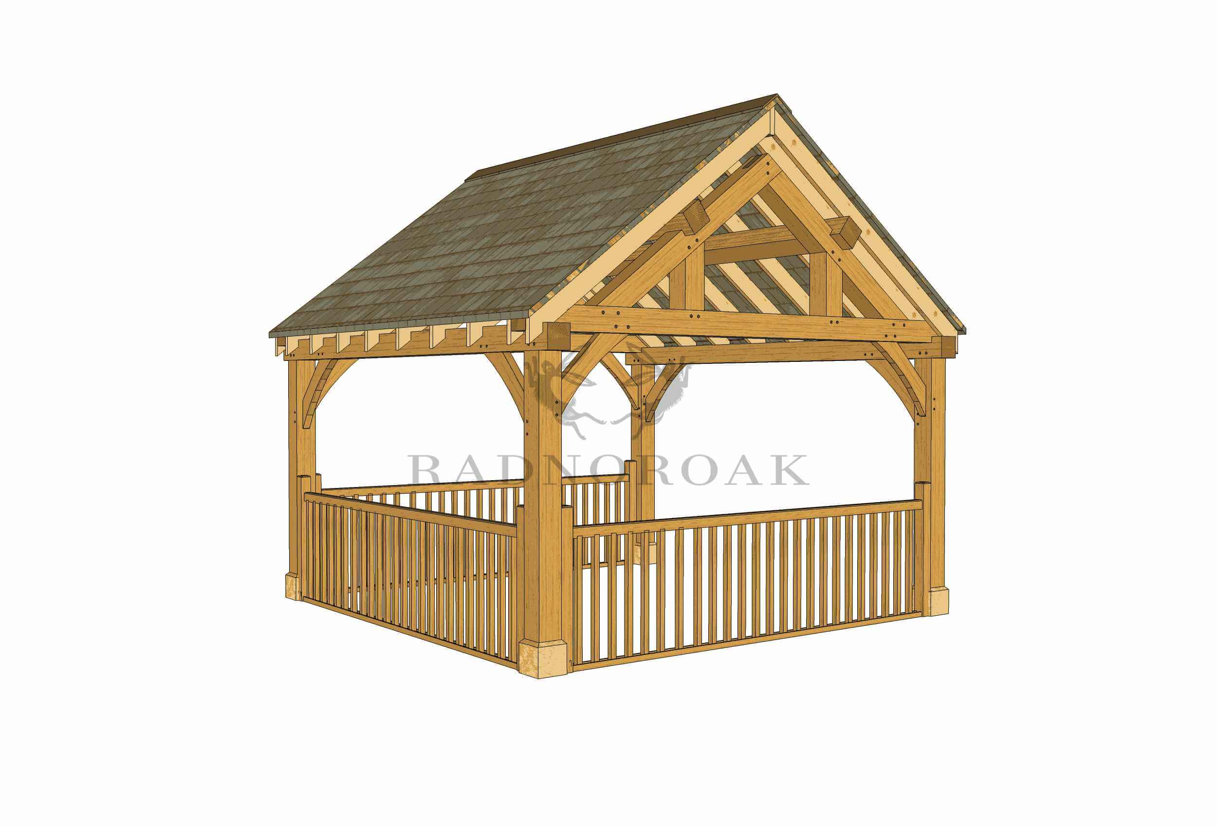 Handcrafted in our Mid-Wales workshop from premium oak using traditional mortice and tenon joints, the pavilion features king post trusses & chunky oak knee braces. Choose from cedar shingles, natural slate, or clay tiles to complete the look. Optional Staddle Stones with stainless steel pins are available for a classic base finish.