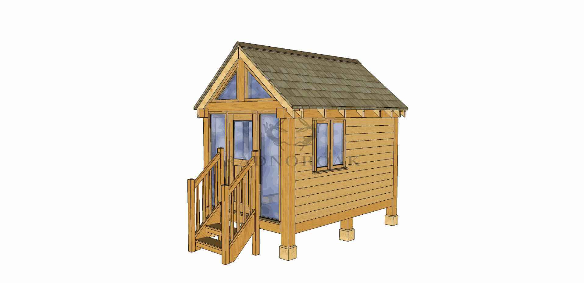 The GC002 is a striking oak framed garden building, crafted with traditional mortice and tenon joints and designed to elevate your outdoor space. Raised on sturdy oak posts and accessed via a charming staircase, it's a charming design to house guests and holidaymakers at countryside getaways.