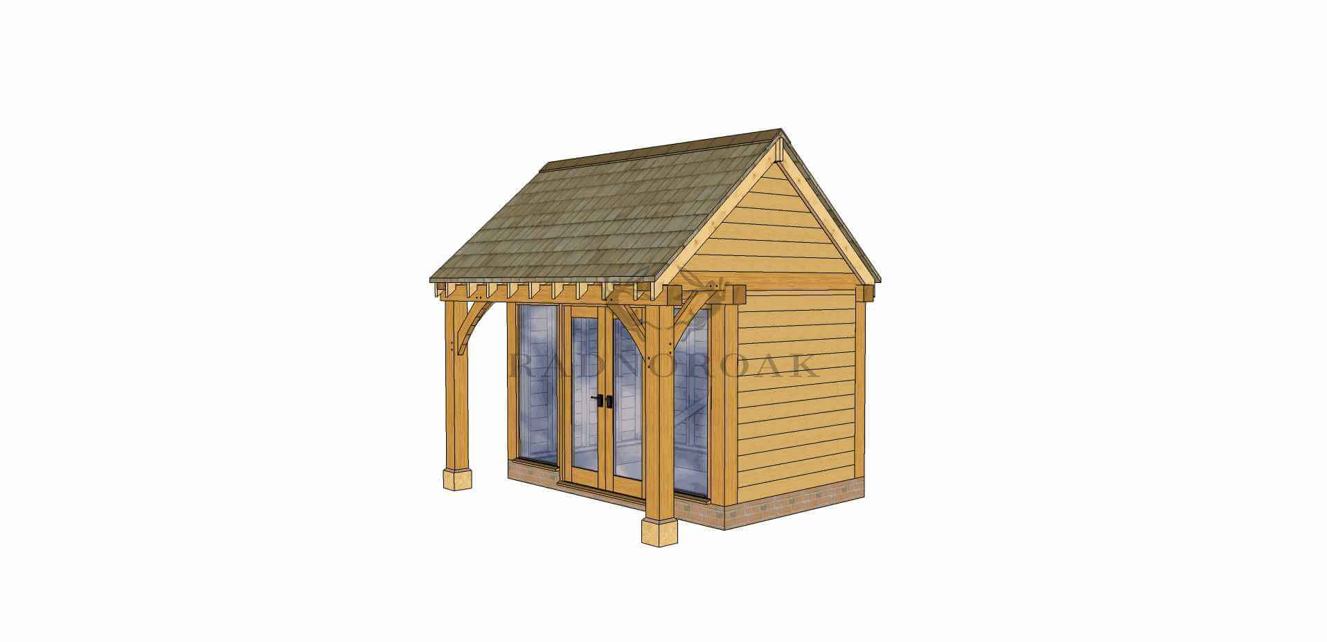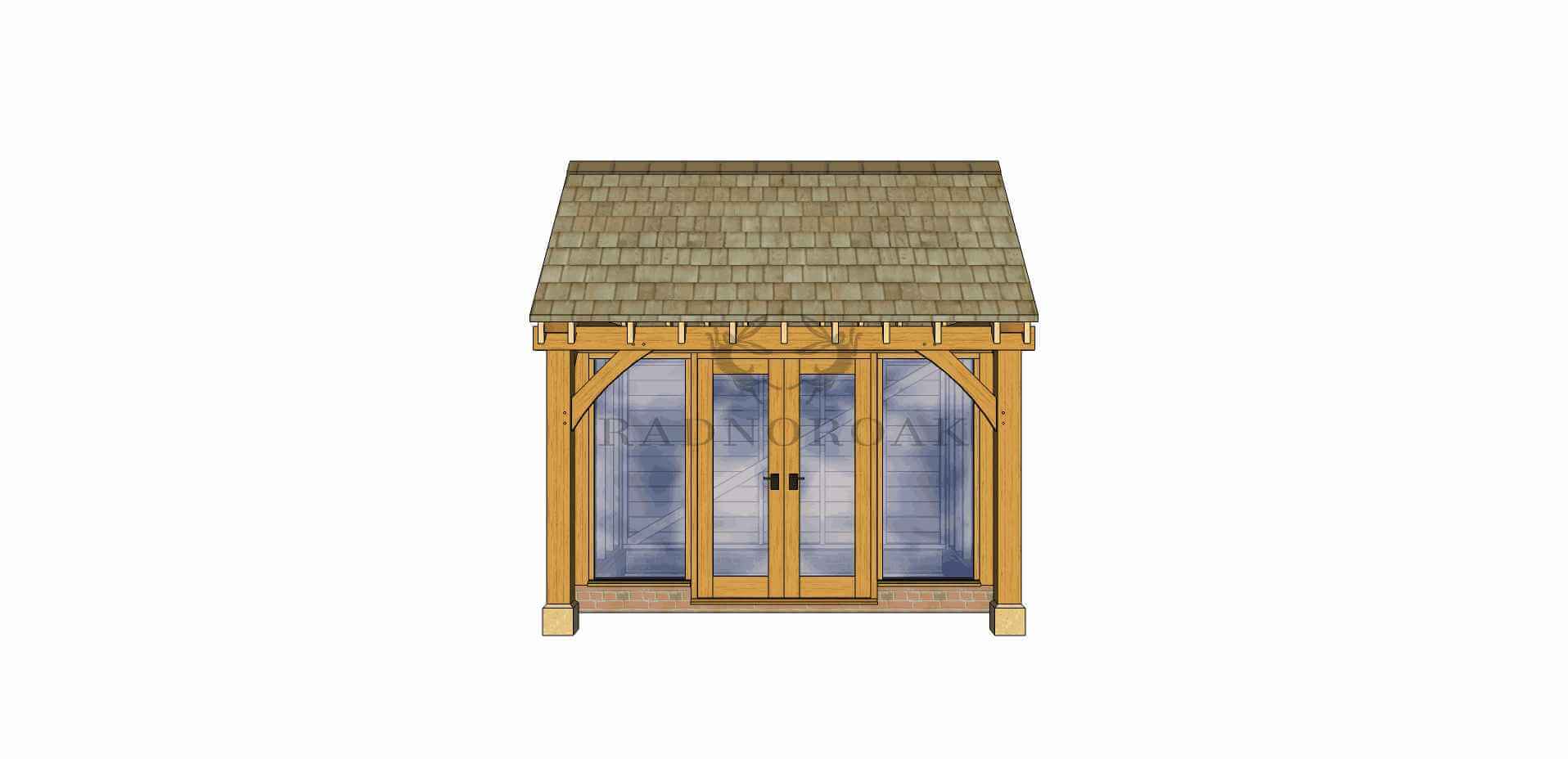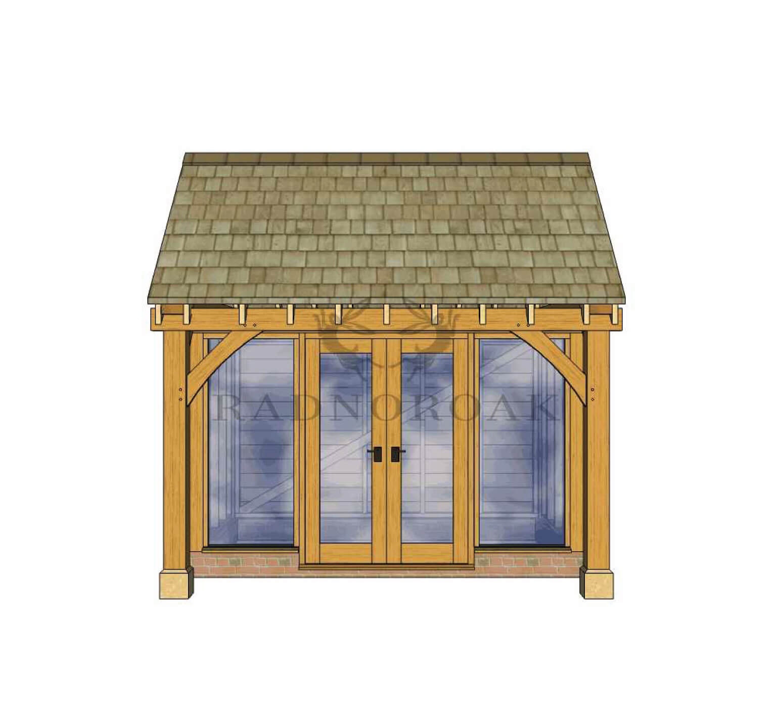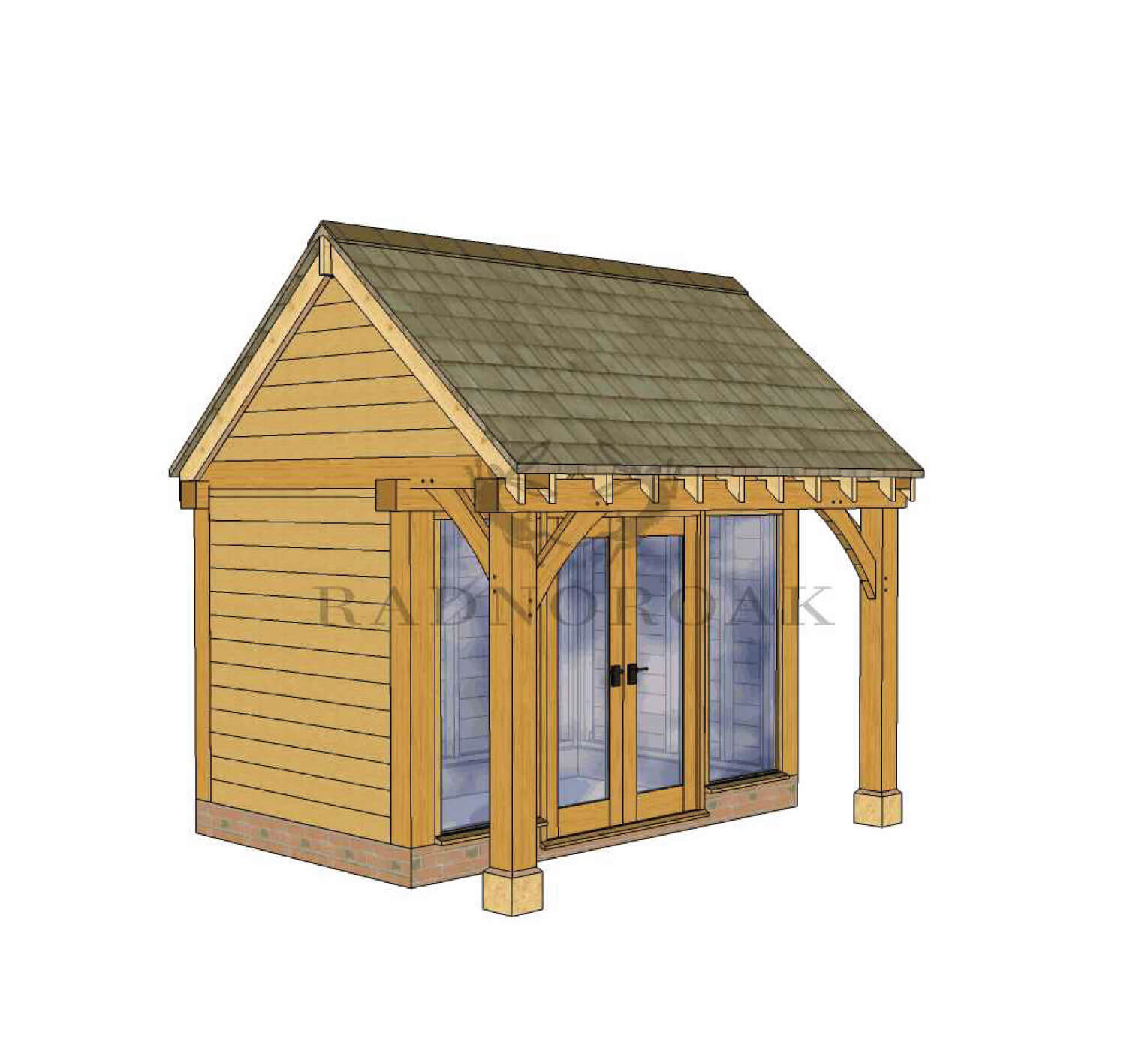 The SHS005 oak framed garden room is a compact but practical oak building – ideal for use as a home office, creative space, or peaceful garden retreat. With a square 3.5m x 3.5m layout and generous glazing to the front, it offers a light-filled interior that blends modern usability with timeless oak craftsmanship.