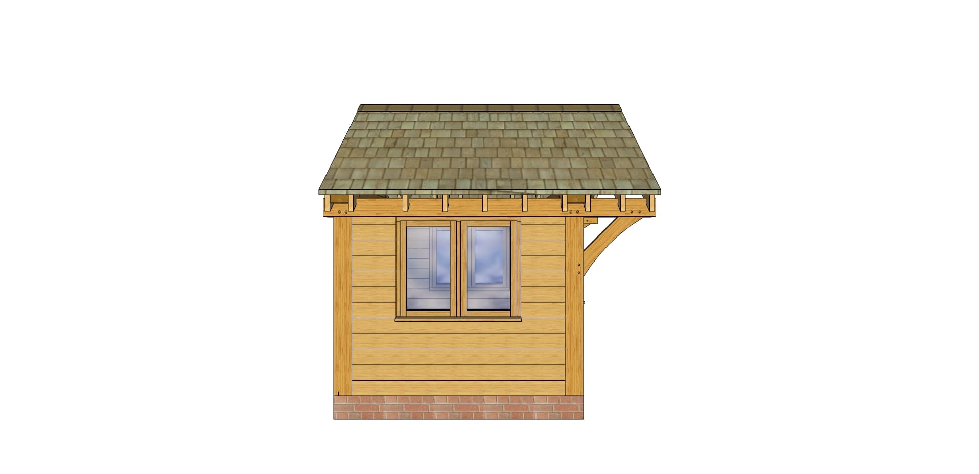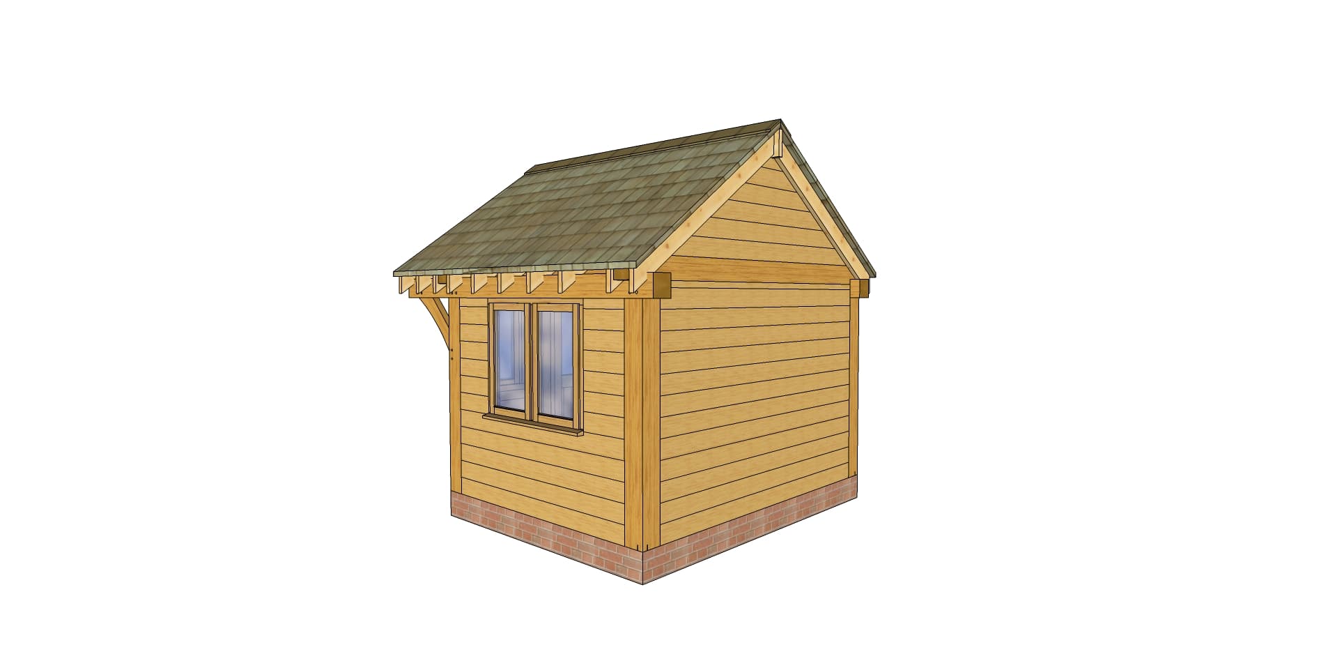 Measuring 3.00m wide and 3.40m tall, it offers generous internal space for a home office, art studio, or children’s playroom. The open front gable adds unique character, while the front and side windows ensure natural light flows in.