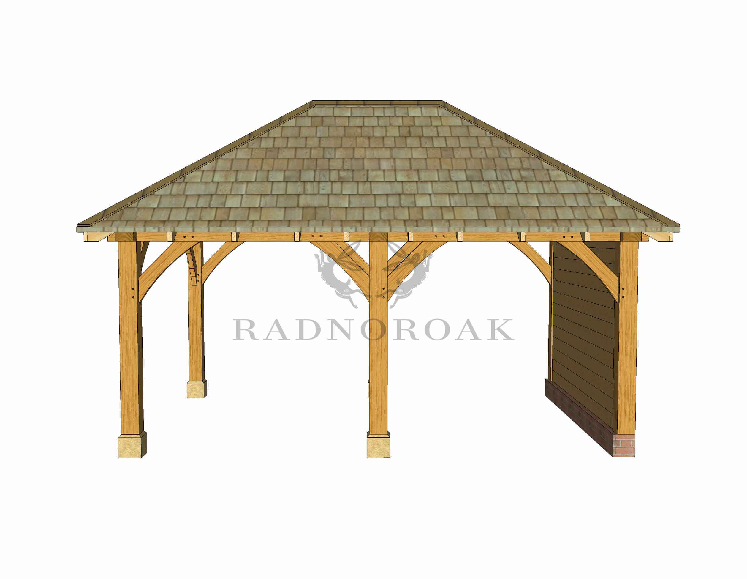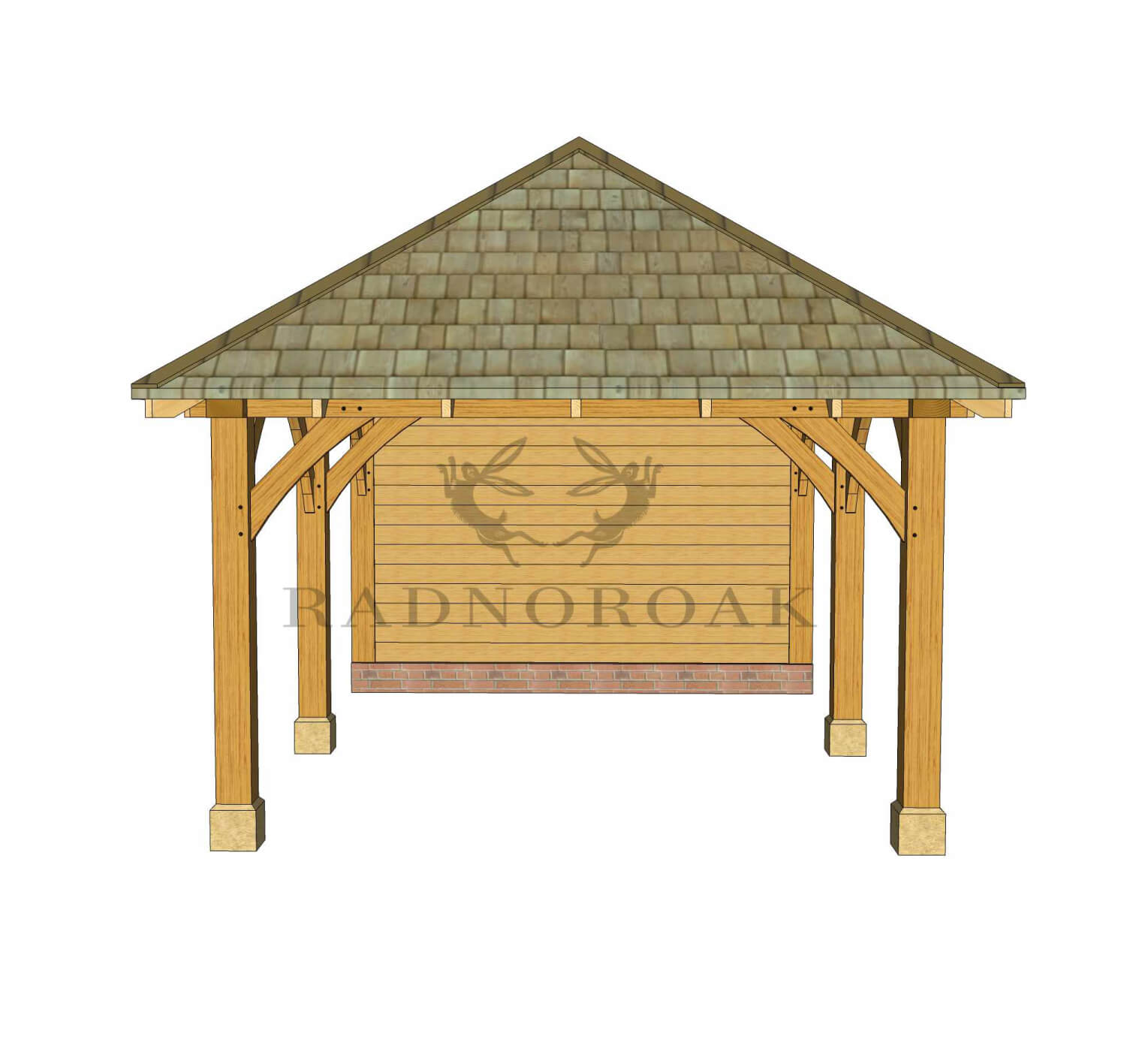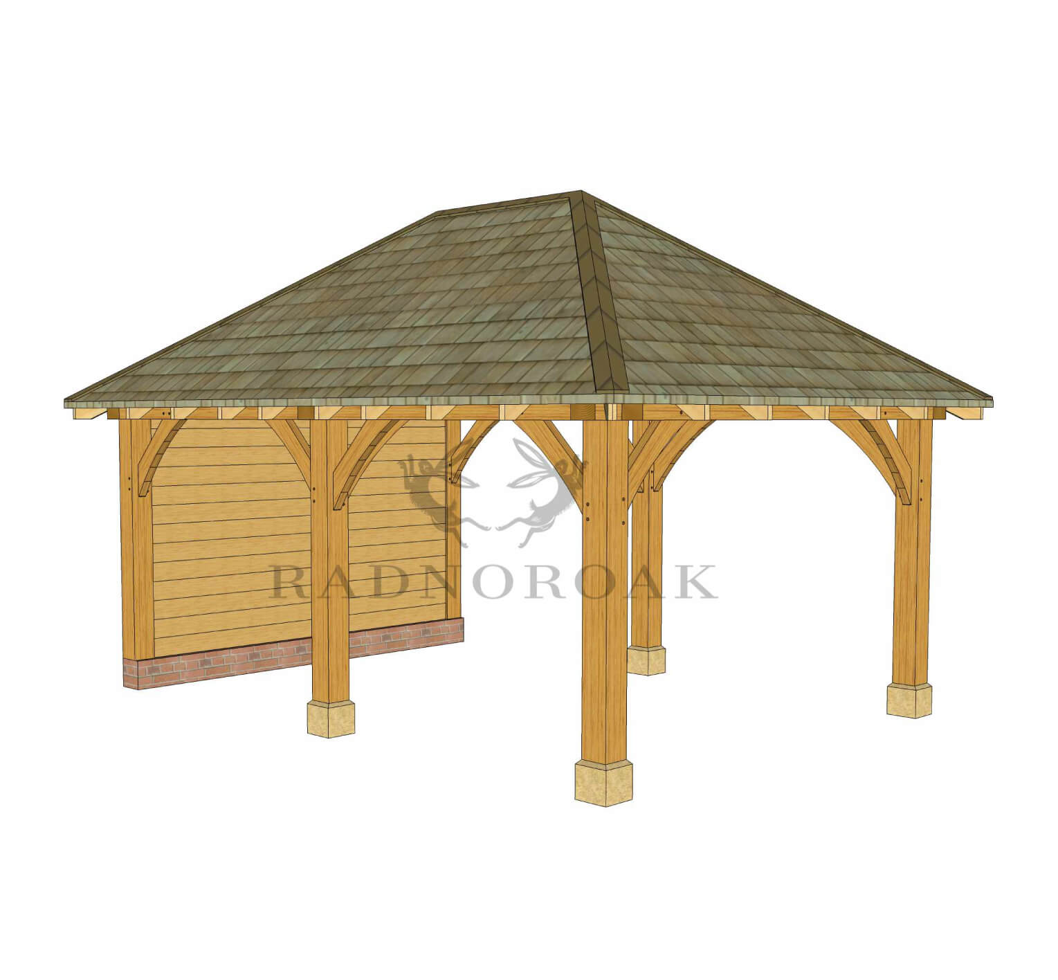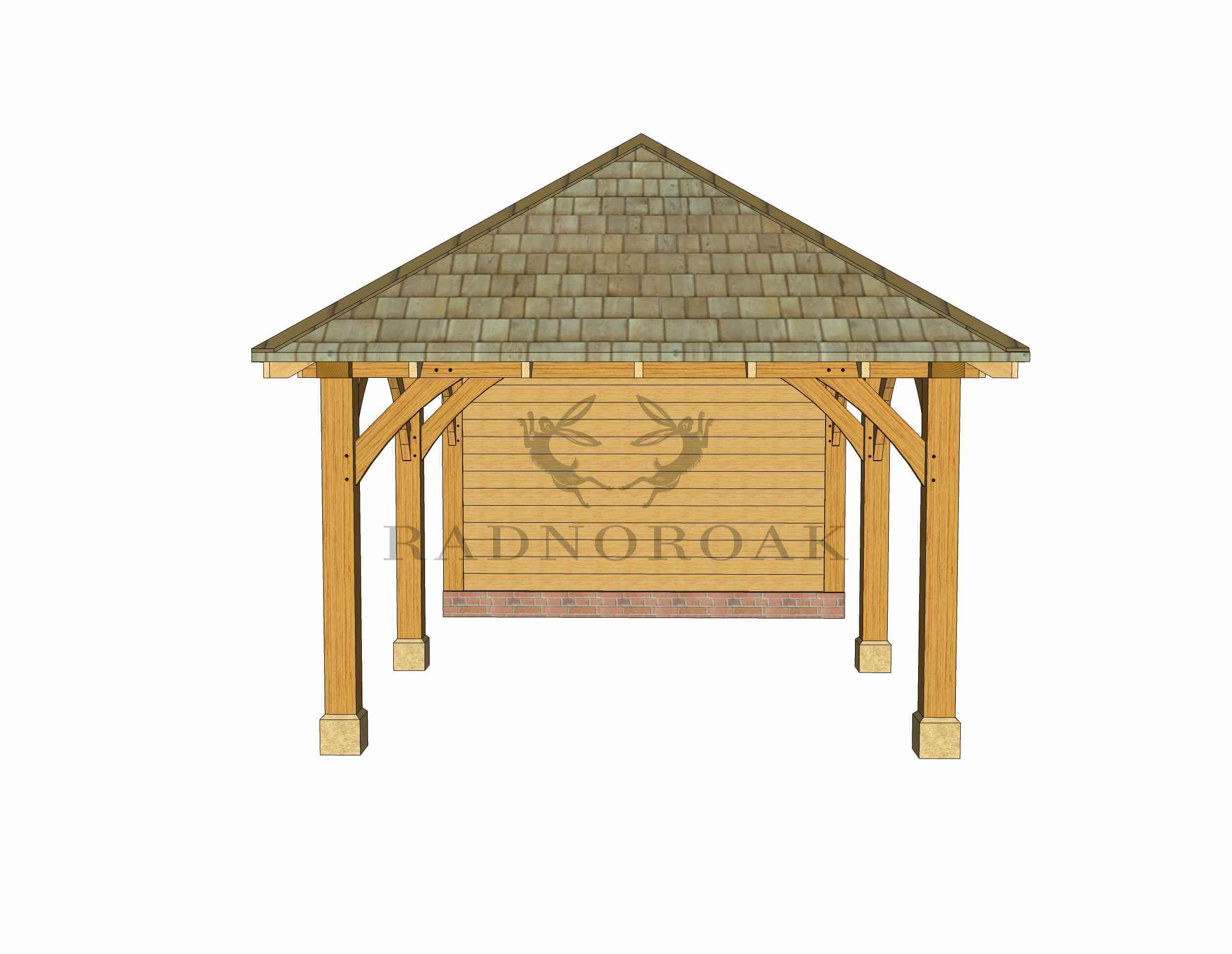 The roof carpentry is supplied, and buyers can choose from Cedar shingle, slate, or tiled roofing. The gazebo can be further amplified with Staddle Stones with sturdy stainless steel pins. Radnor Oak, established in 1990, has developed a reputation for being the UK's market leader in oak and timber framed buildings. The company offers various oak gazebo designs, with bespoke manufacturing options. The final height of a building is dependent on chosen roofing materials and brickwork.