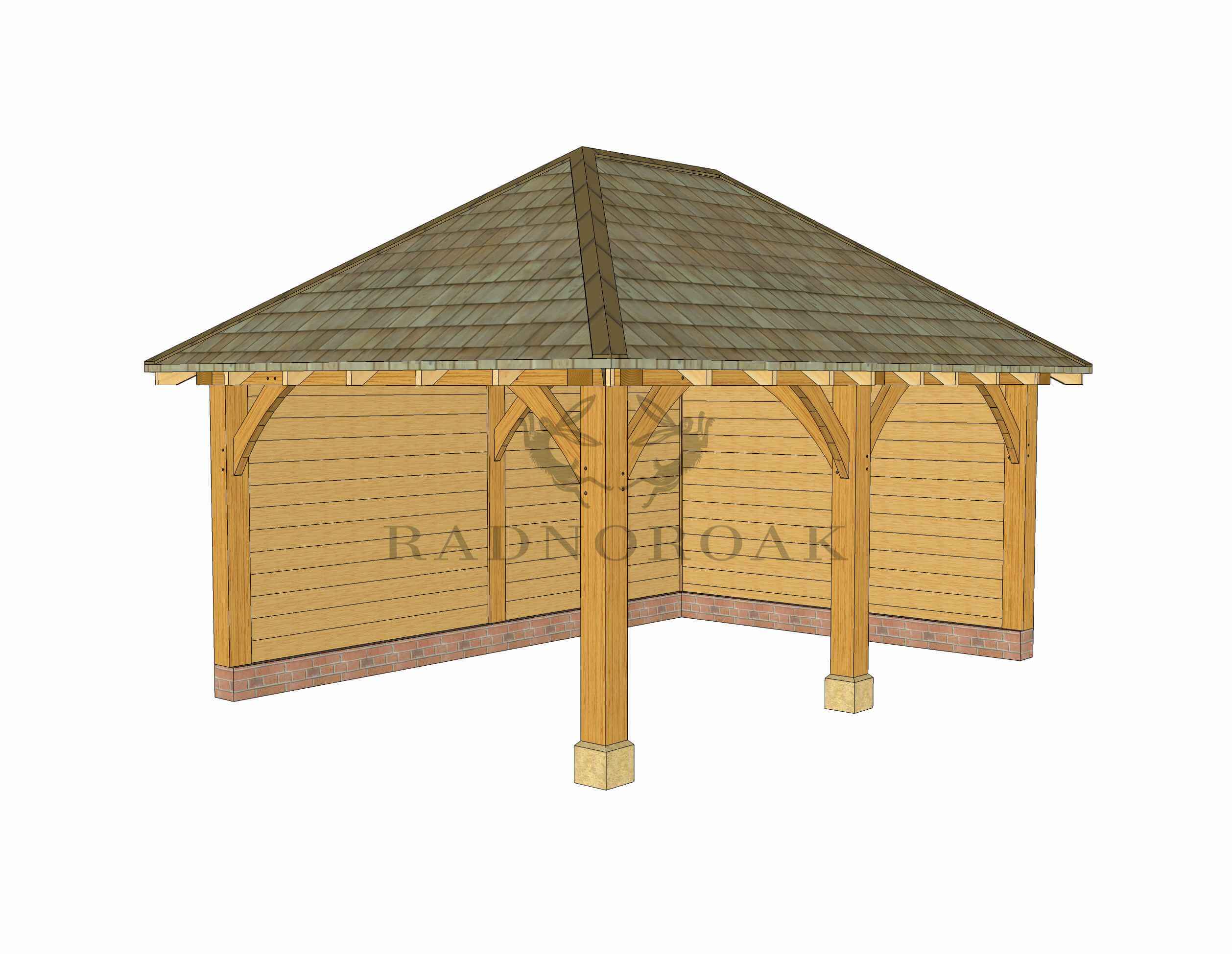 The Oak Framed Gazebo GL003 from Radnor Oak is a traditionally jointed, pre-jointed outdoor oak gazebo kit complete with boarded side panels. Established in the business since 1990, Radnor Oak takes deep pride in manufacturing top-quality, unique, and adaptable designs. The kit includes a traditionally jointed oak frame with knee braces and roof carpentry. For extra personalization, cedar shingle roof, slate roof, or tiled roof options are available.