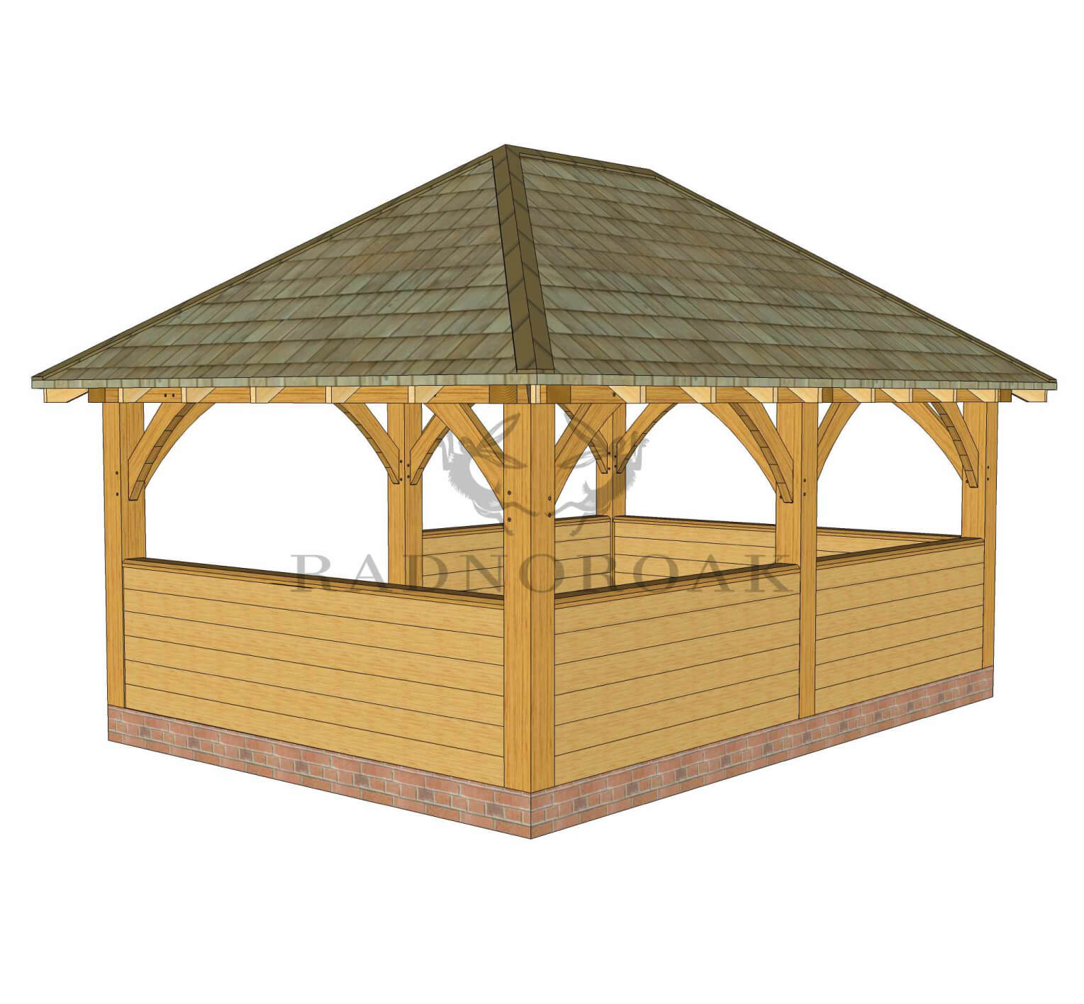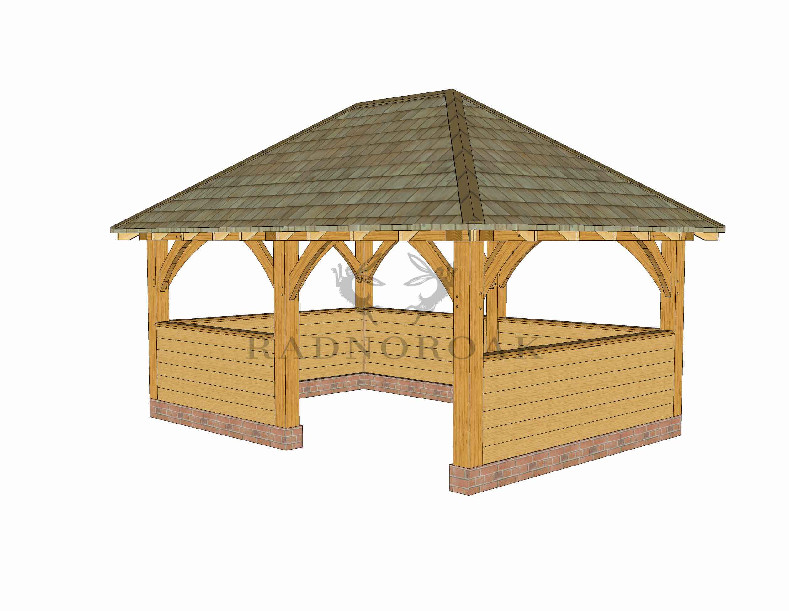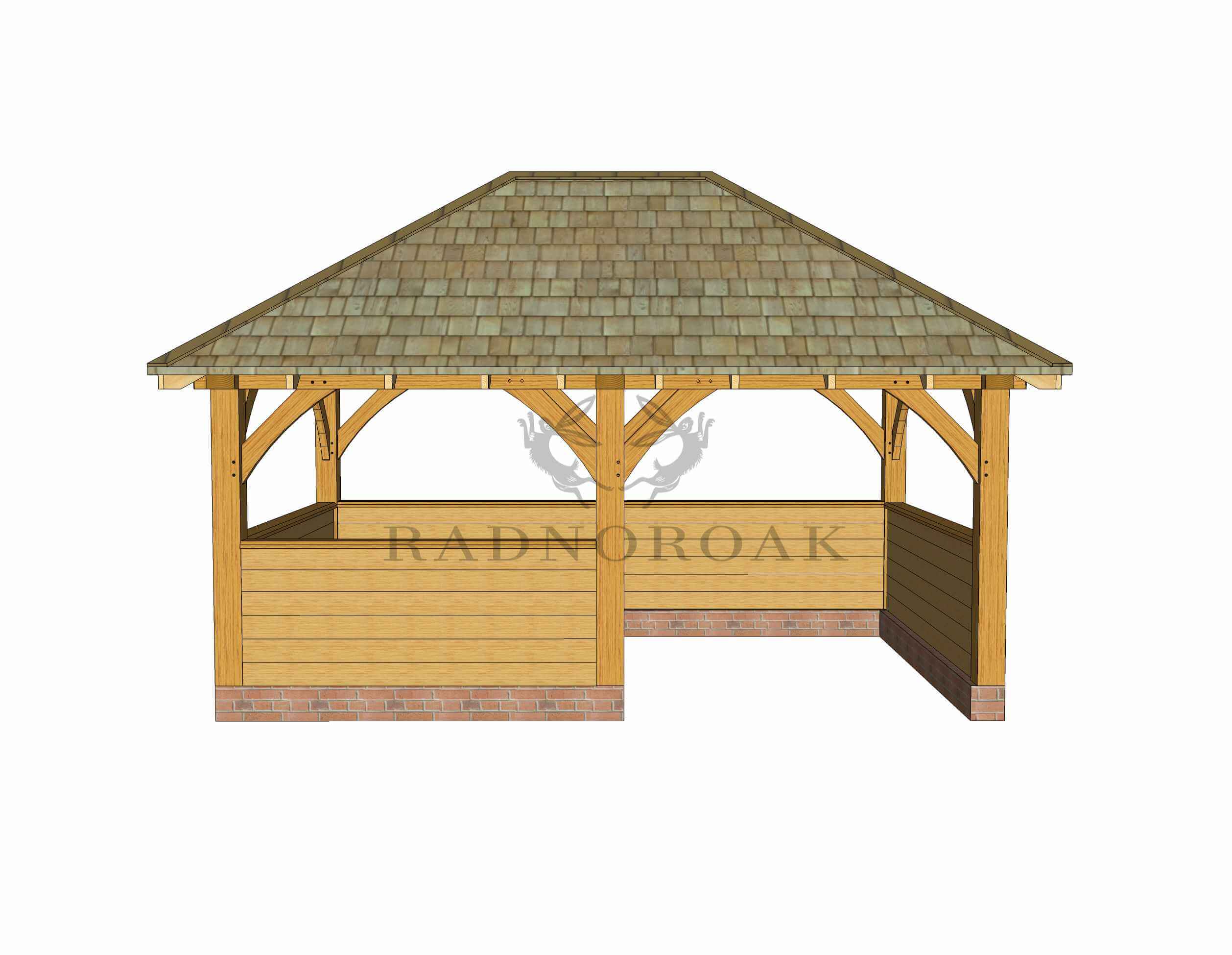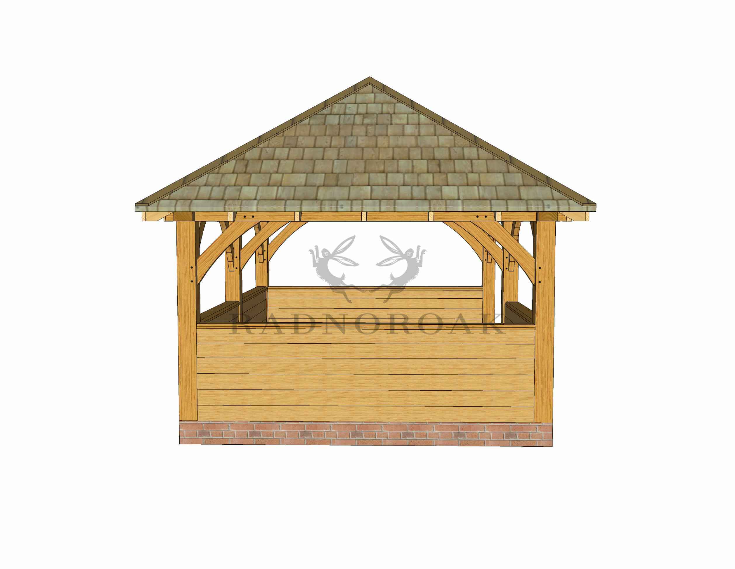This beautifully crafted oak framed gazebo combines open garden shelter with half panels, for wind breaking and privacy. A seamless blend of outdoor enjoyment and practical weather protection.