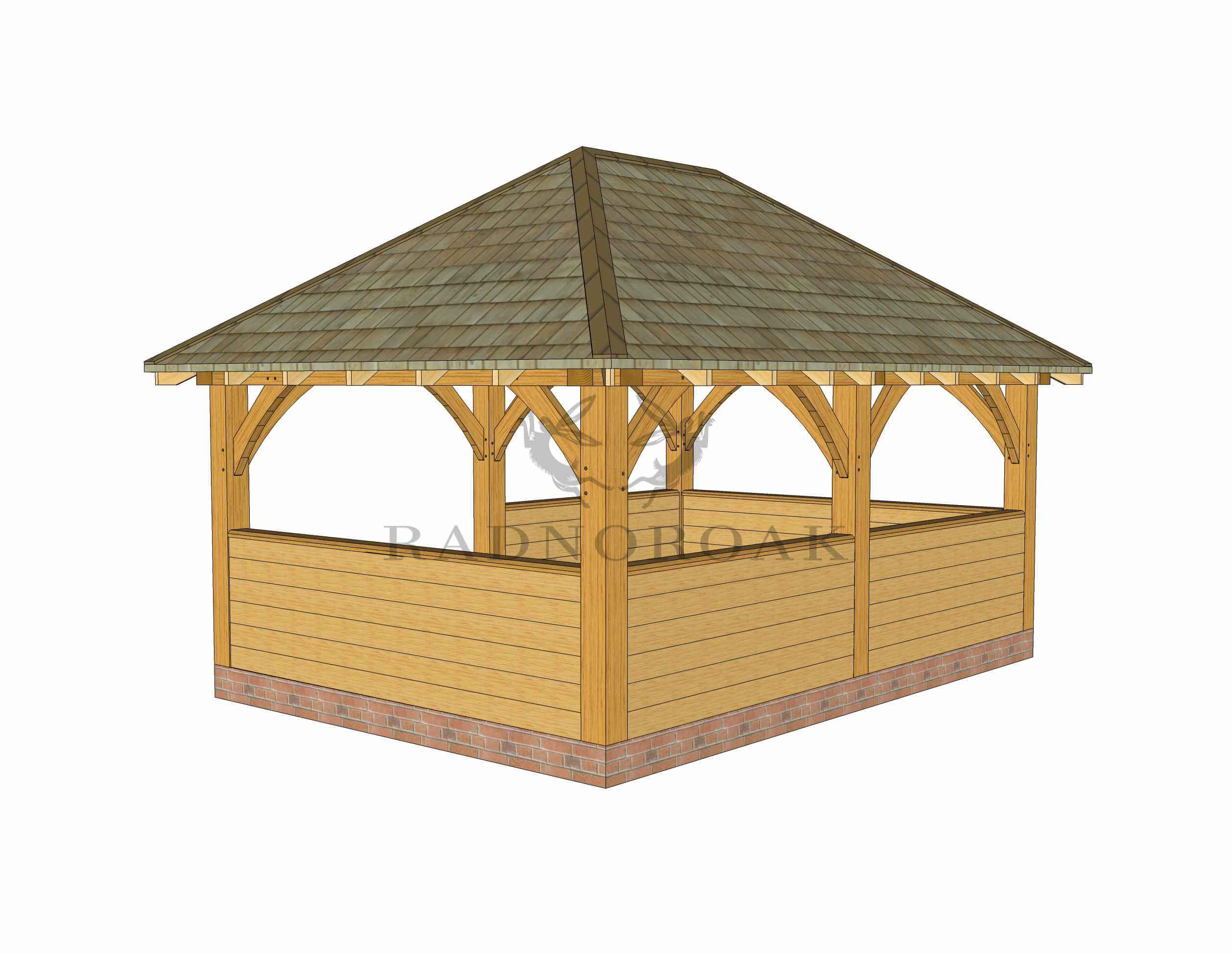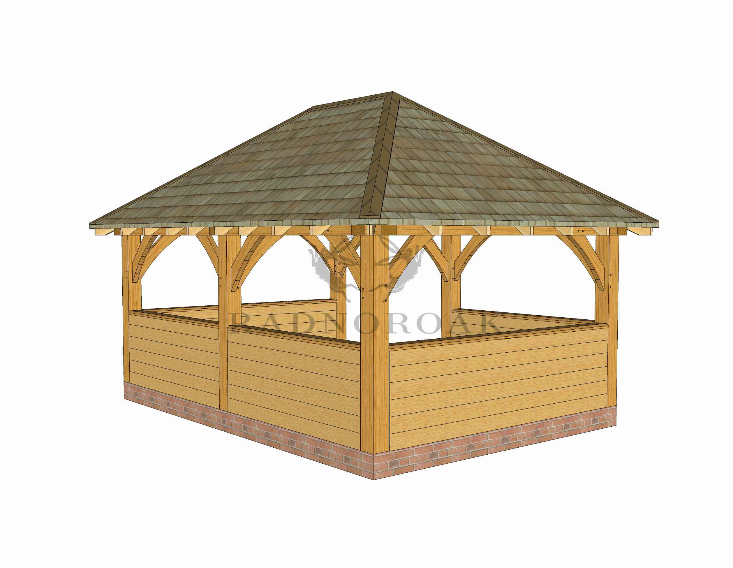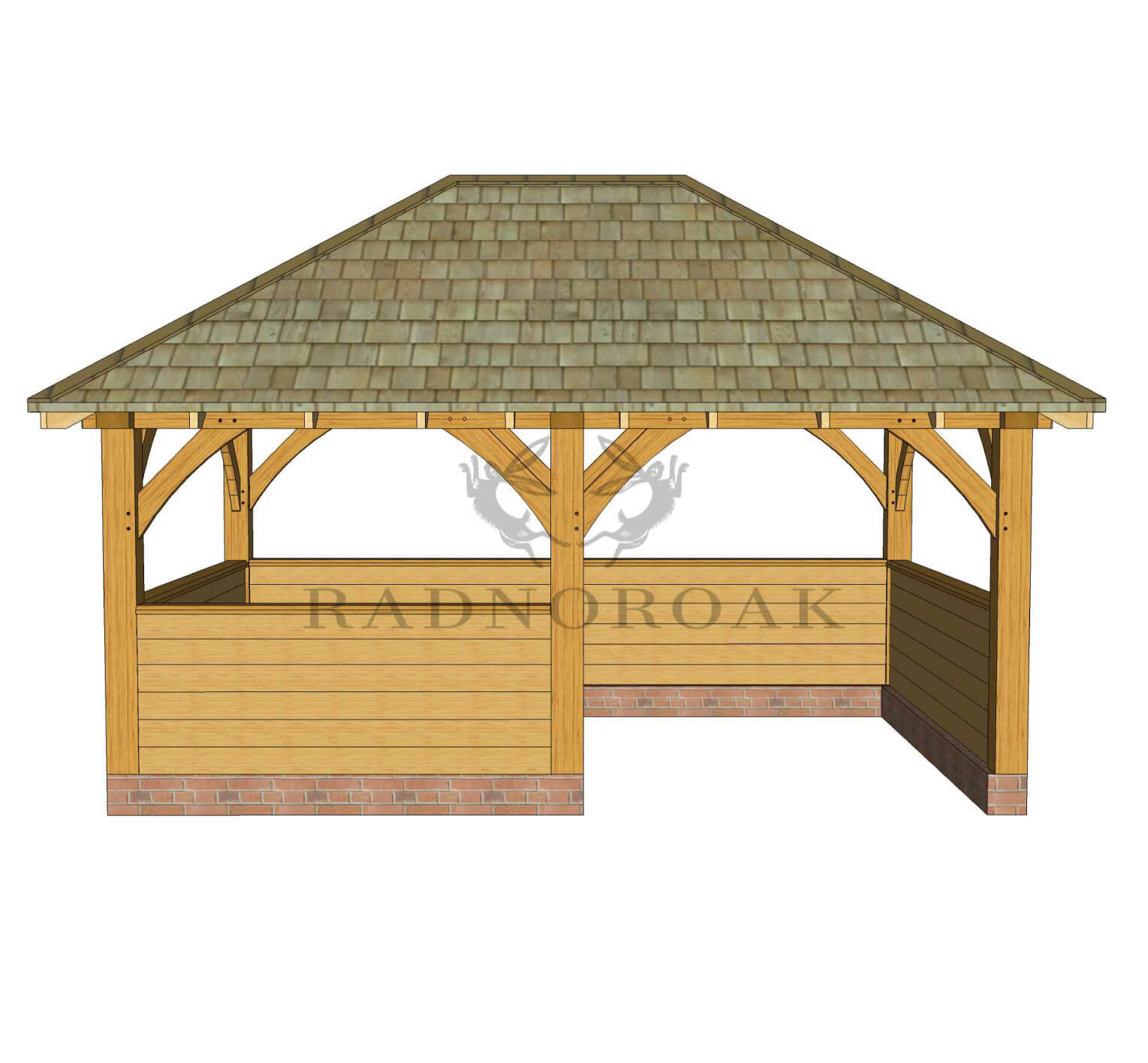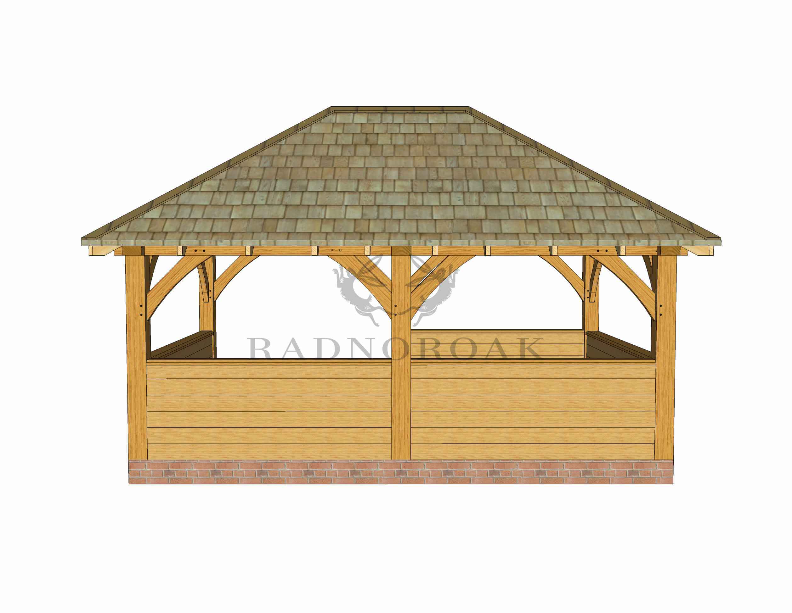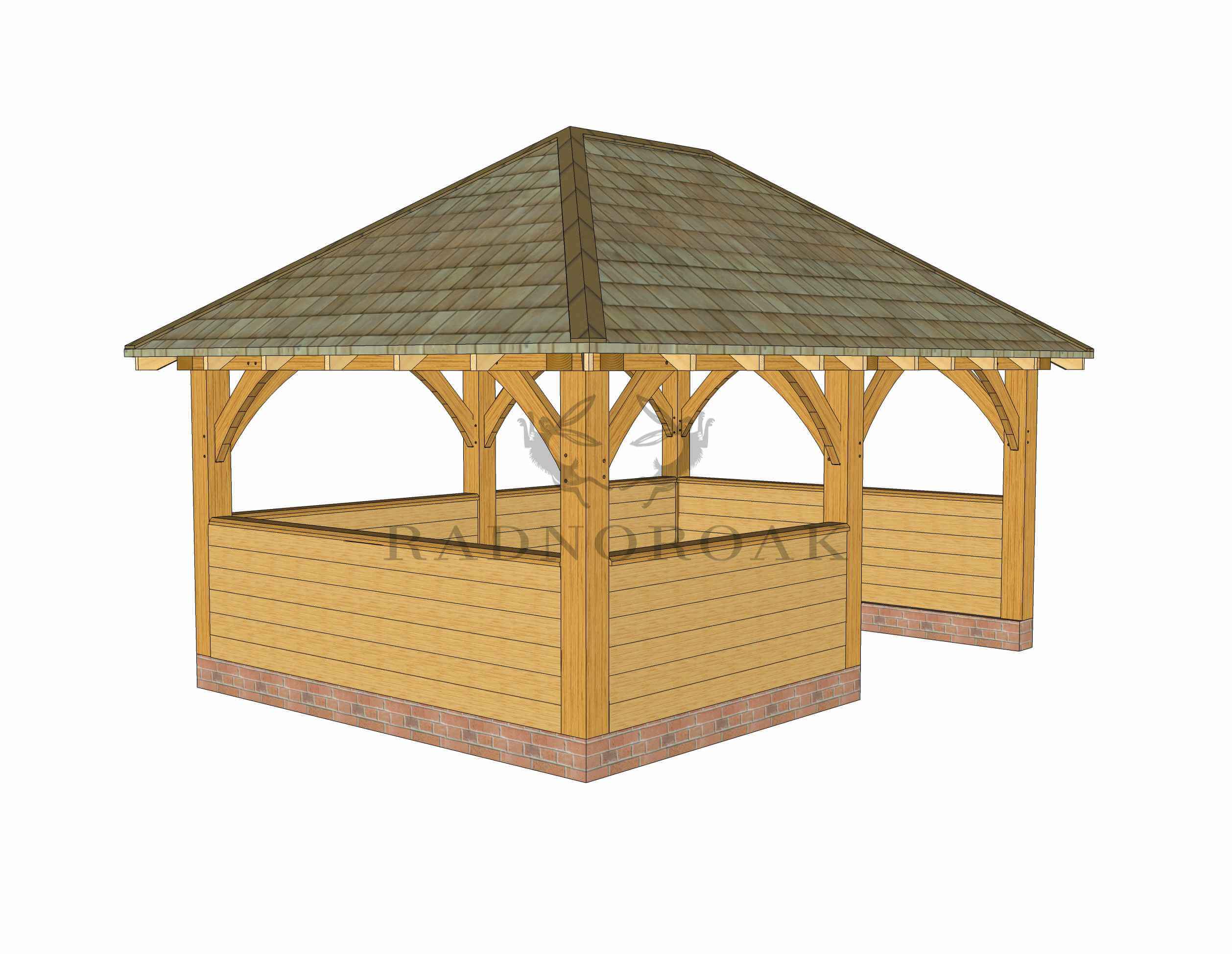 This beautifully crafted oak framed gazebo combines open garden shelter with half panels, for wind breaking and privacy. A seamless blend of outdoor enjoyment and practical weather protection.