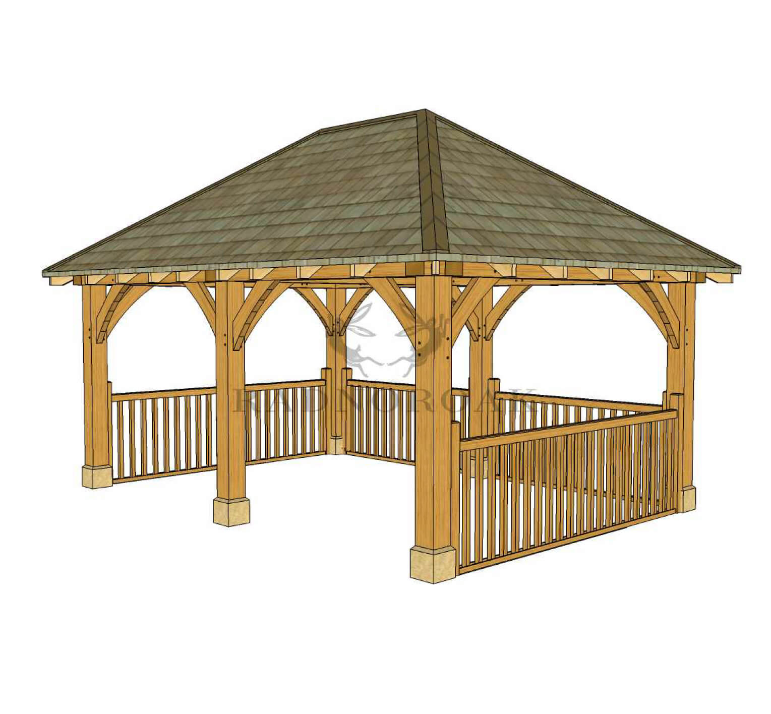 This design features handcrafted oak posts, sturdy knee braces, and elegant oak balustrades with handrails – all pre-jointed and ready to assemble. Every detail reflects our commitment to traditional techniques and enduring quality. Roofing carpentry is included as standard, with covering options in cedar shingles, natural slate, or clay tiles. For a traditional finish, Staddle Stones with stainless steel pins are available upon request.