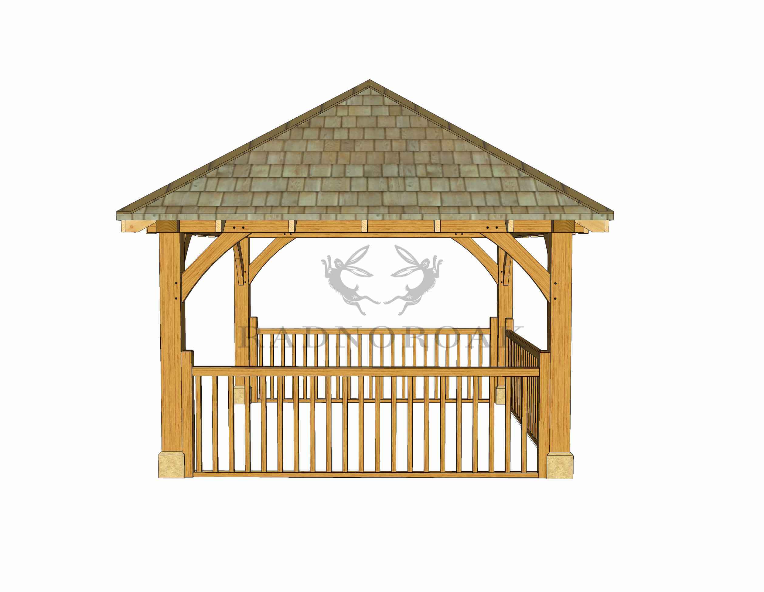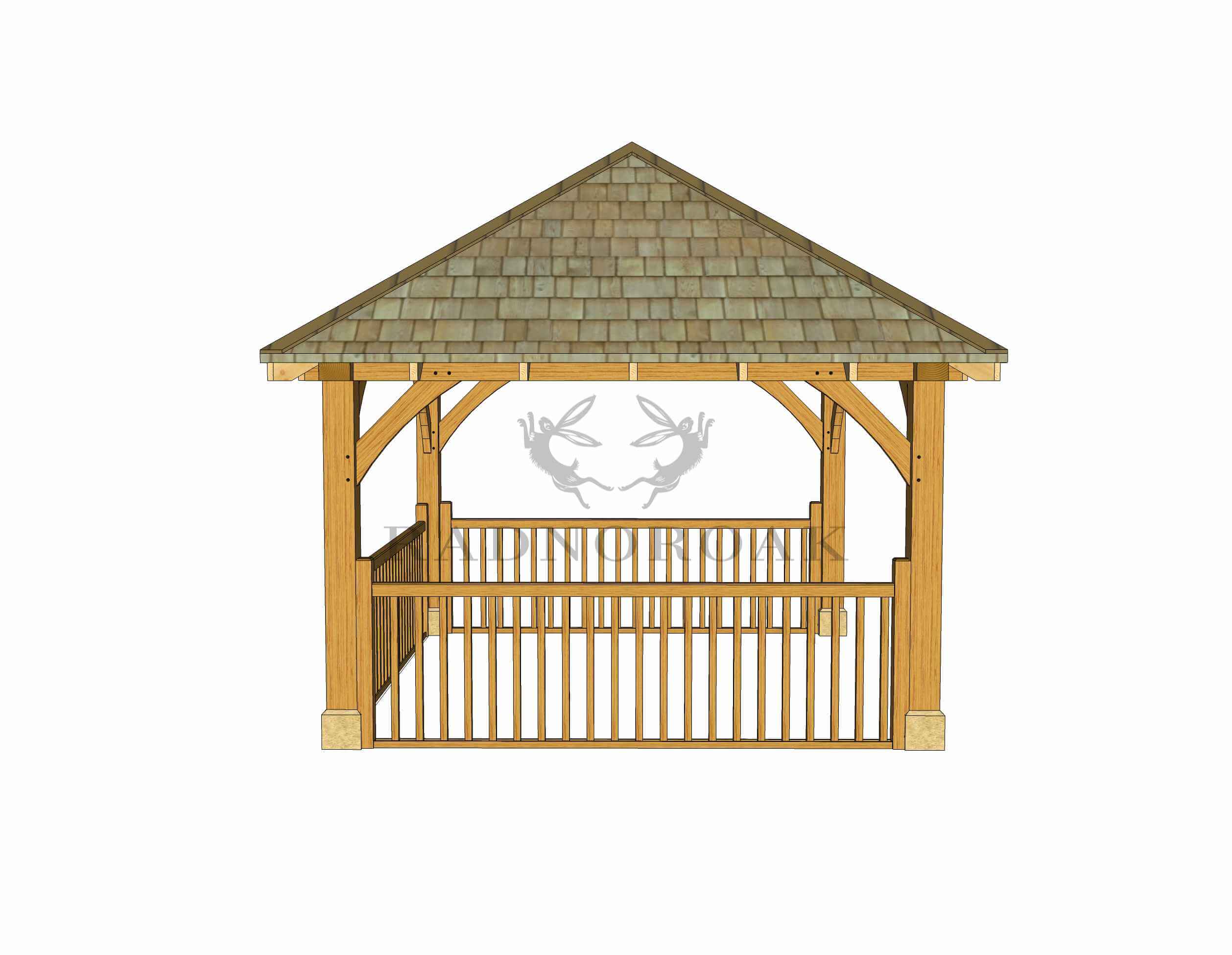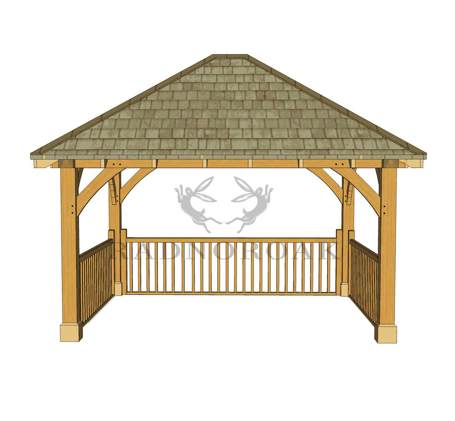 This oak framed gazebo combines open shelter with elegant oak balustrades and handrails - a classic addition to any British garden or outdoor setting.