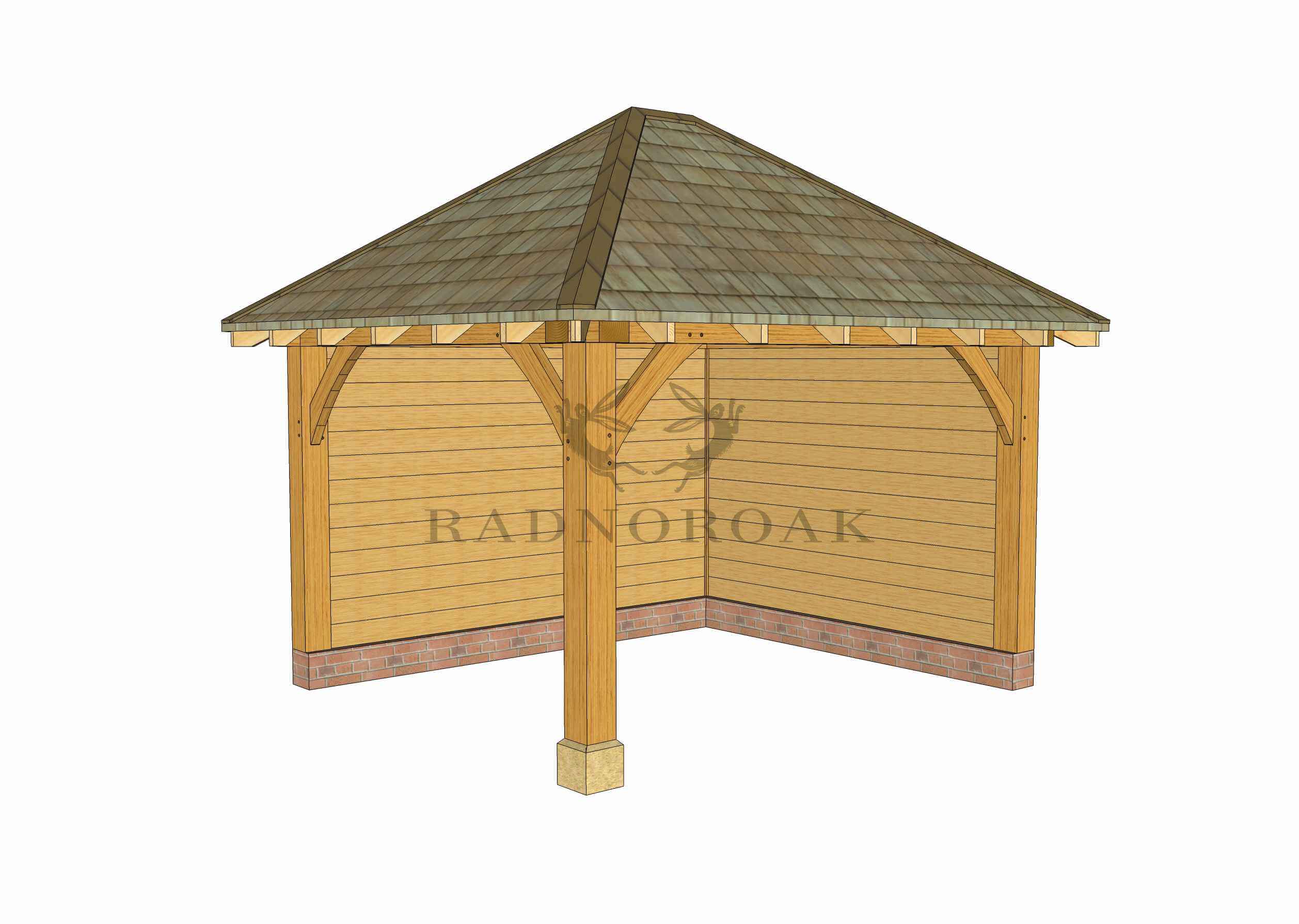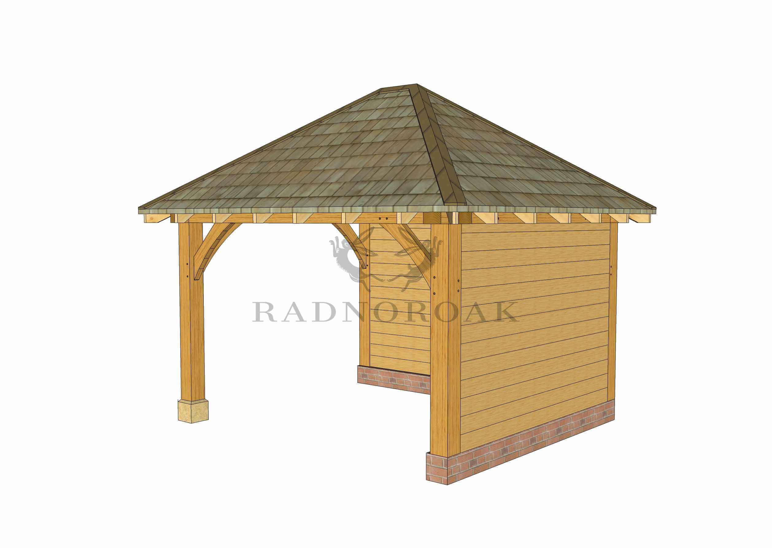 Crafted using traditional mortice and tenon joints, chunky oak posts, and robust knee braces, the GS003 is supplied as a pre-jointed kit for straightforward assembly. Roofing can be finished in cedar shingles, natural slate, or clay tiles to match your garden setting. Optional staddle stones with stainless steel pins provide a classic finishing detail.