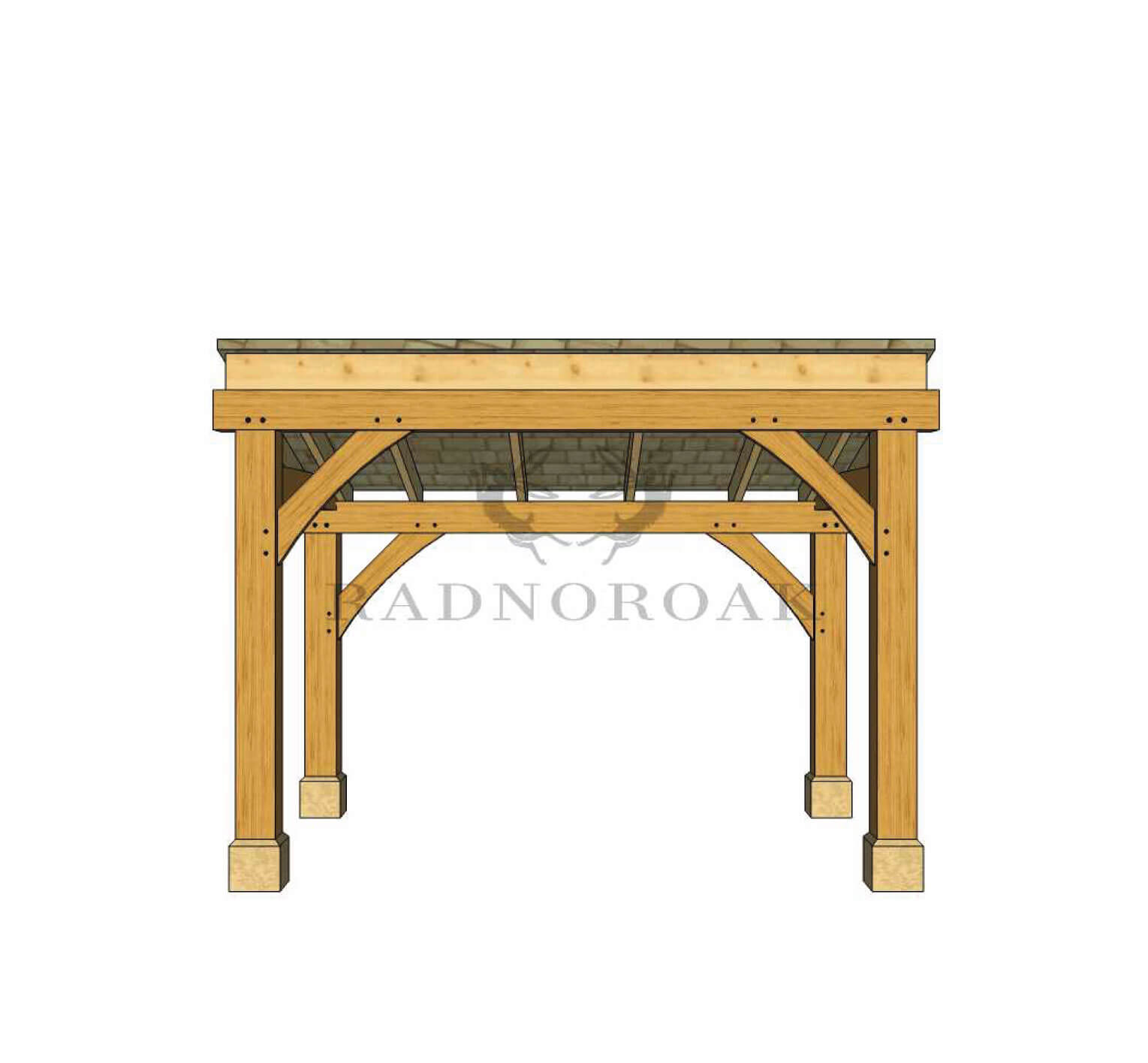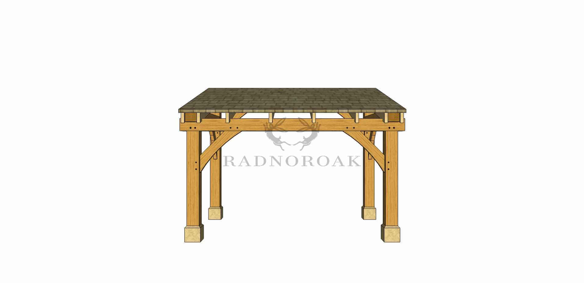Crafted in our Mid-Wales workshop using premium oak and traditional mortice and tenon joints, it features chunky oak posts, traditional knee braces, and exposed rafters for a classic finish. The sloped roof ensures effective rainwater runoff and can be finished with cedar shingles, slate, or clay tiles to suit your setting.