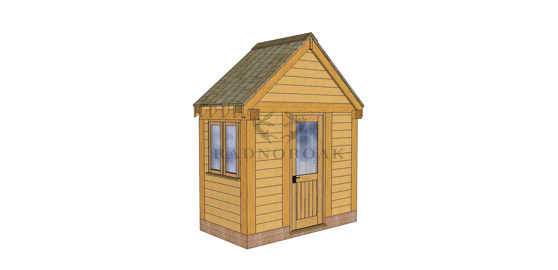 Handcrafted in our Mid-Wales workshop using premium oak and traditional mortice and tenon joints, the design features chunky oak posts, glazed joinery, and a steeply pitched roof. The enclosed layout provides additional insulation and weather protection, while the full-height glazing keeps the space light and inviting.