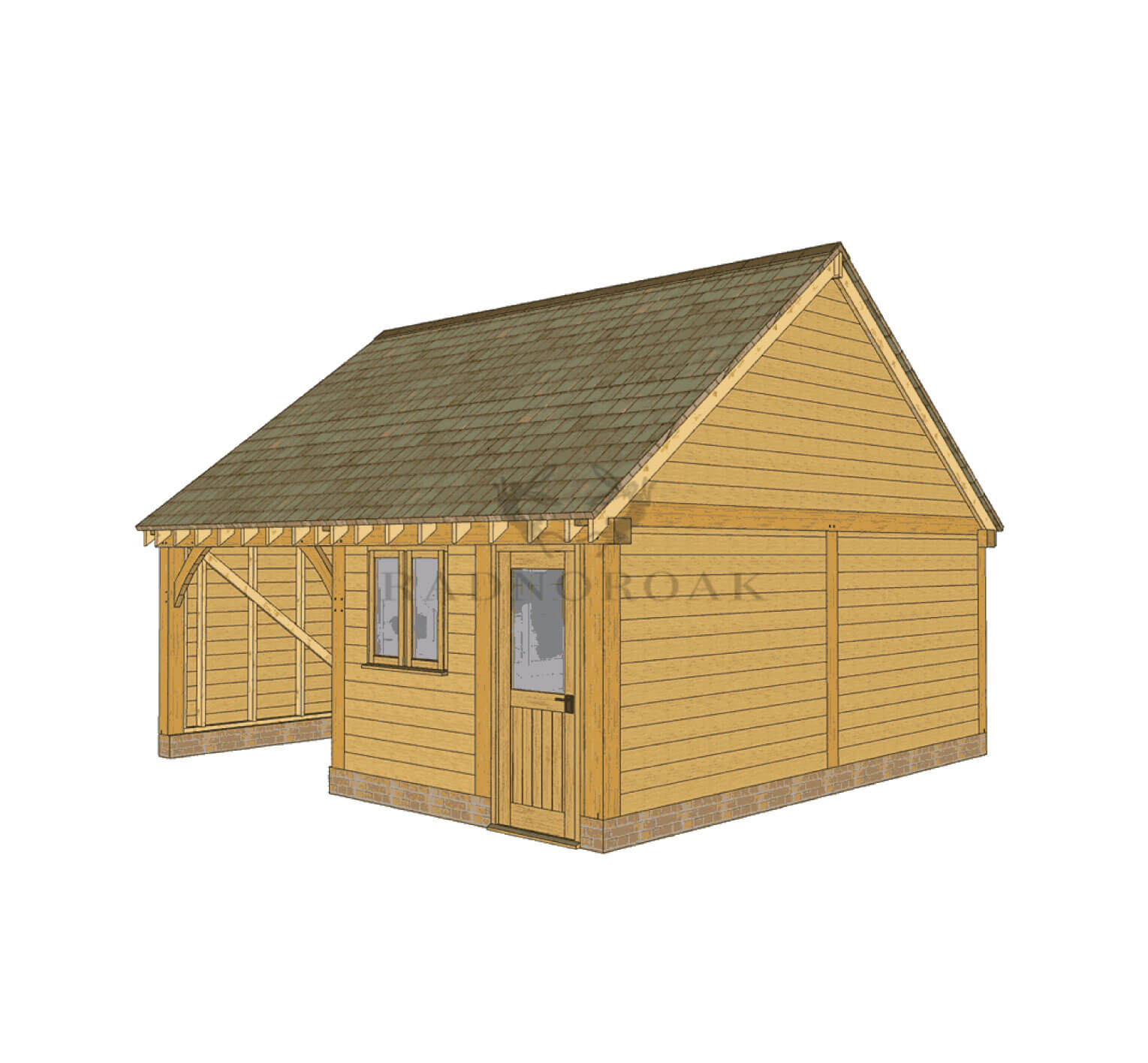 THE BYTON HIGH RIDGE: OAK FRAMED 2 BAY GARAGE WITH ENCLOSED WORKSHOP