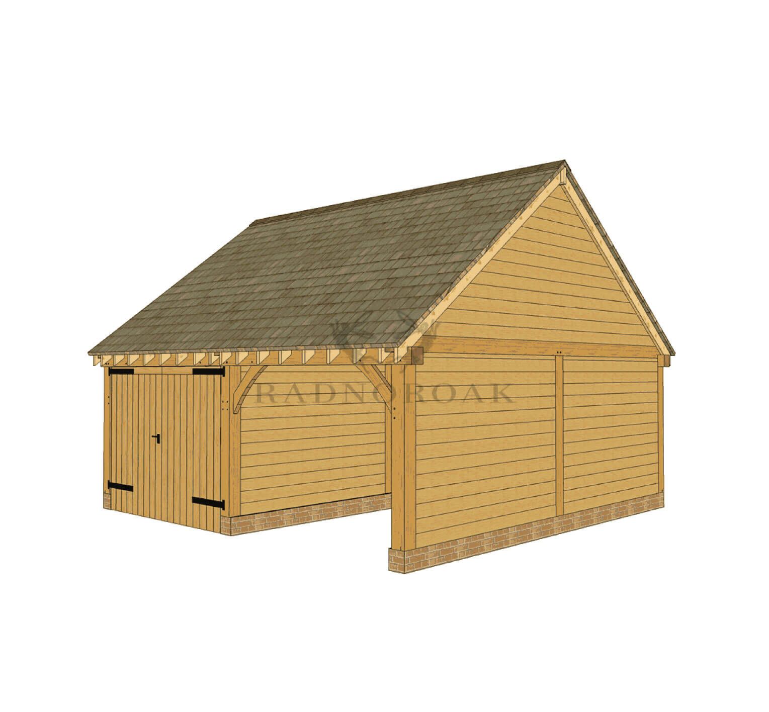 The Byton High Ridge – BYH2016 is a two bay oak-framed garage and carport with secure storage. It features one open-fronted bay for convenient everyday parking and one enclosed bay with doors, providing secure storage for vehicles, tools, or equipment.
