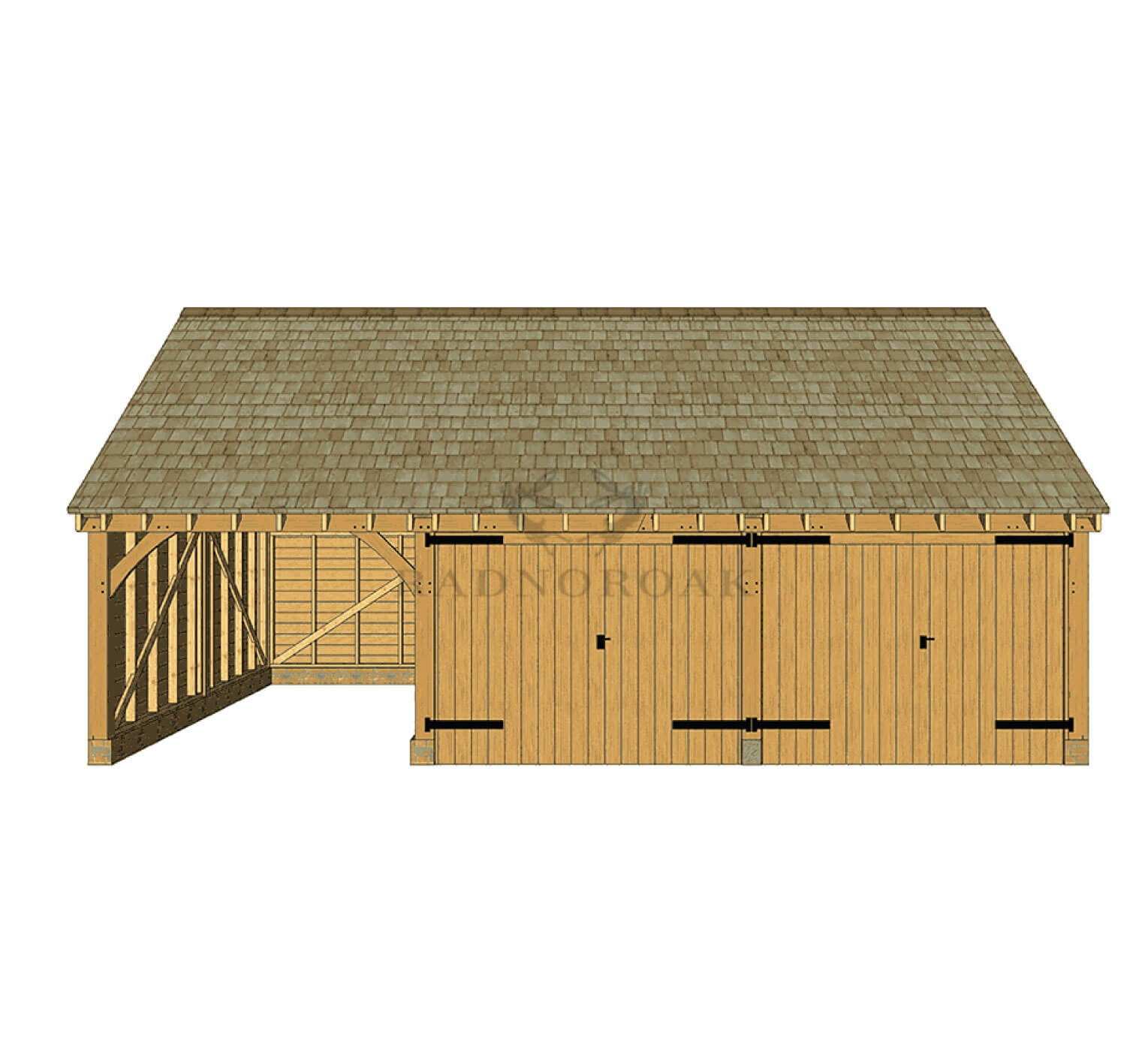 Radnor Oak's 3 Bay Oak Garage & Carport is a stunning addition to any property offering functionality and aesthetic appeal. This elegant structure combines an open carport and two enclosed garages, providing versatile storage and parking solutions.