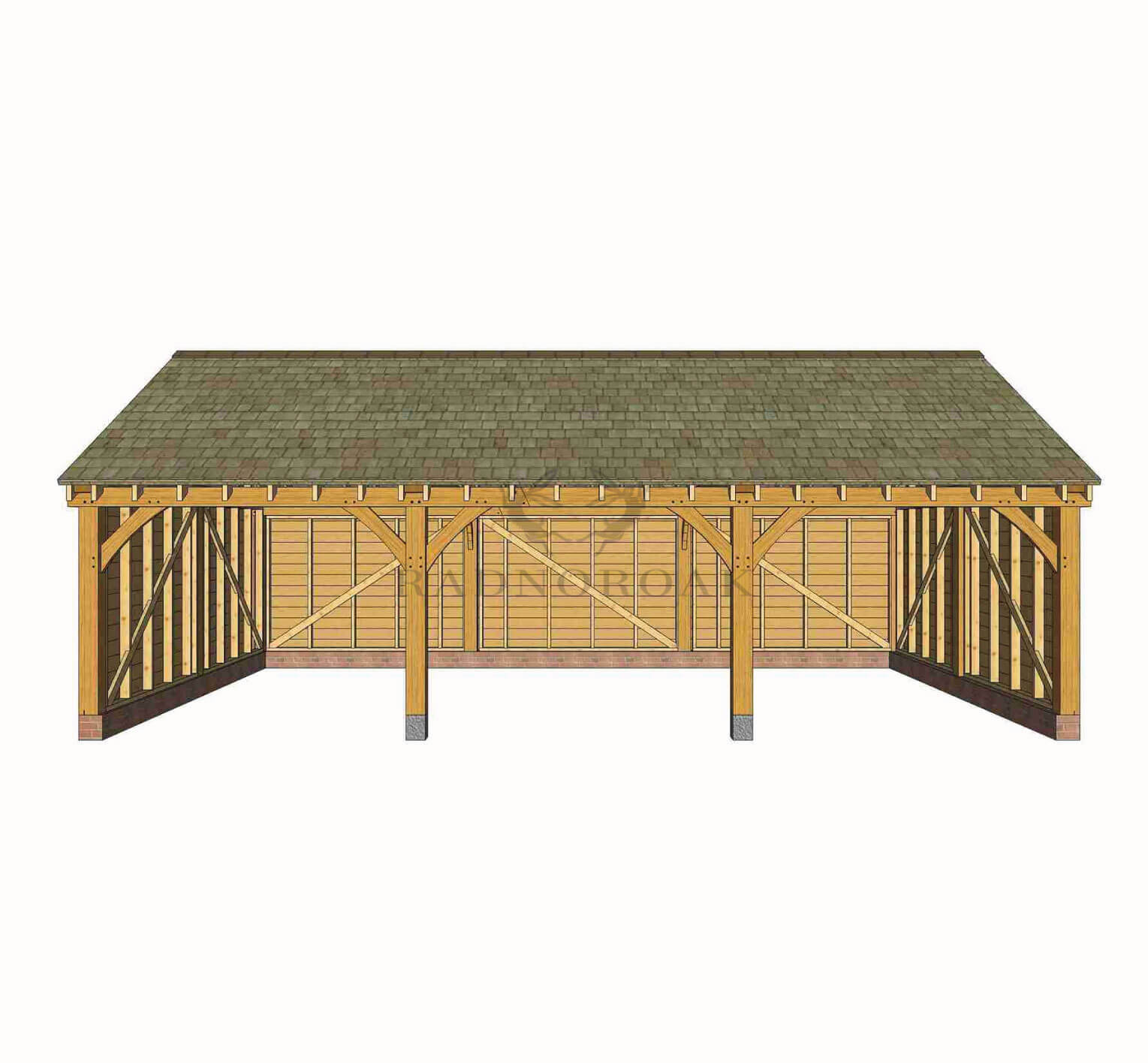 This generously sized three bay oak framed carport combines traditional design with modern day life. Fully open fronted, it provides well-ventilated shelter for multiple vehicles while enhancing the appearance and value of your property.