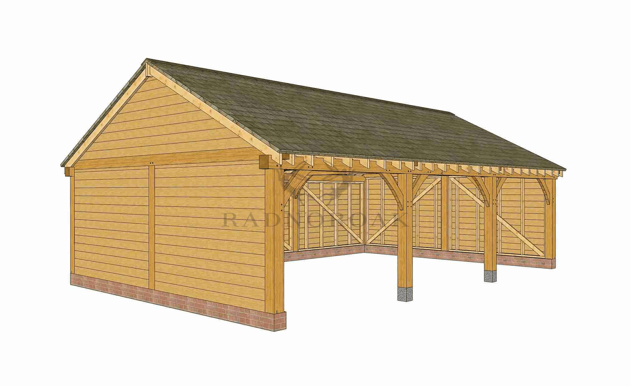Crafted in our Mid-Wales workshop using premium oak and traditional mortice and tenon joints, this structure features chunky oak posts, premium cladding, and traditional knee braces. At 9.00m wide, 3.97m high, and 5.80m deep, it offers ample space for larger vehicles & 4x4's.