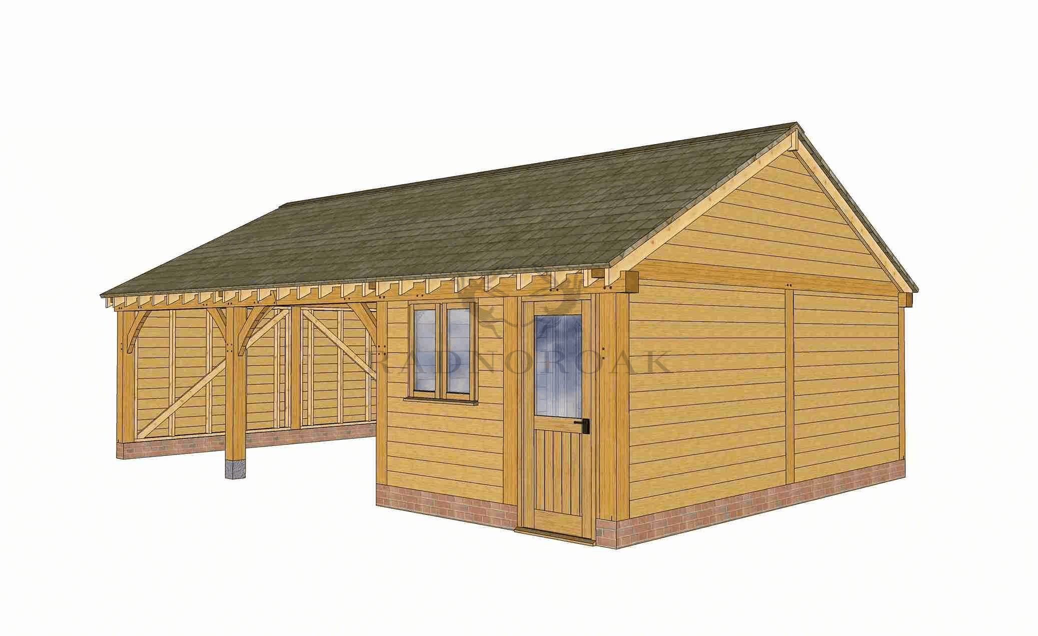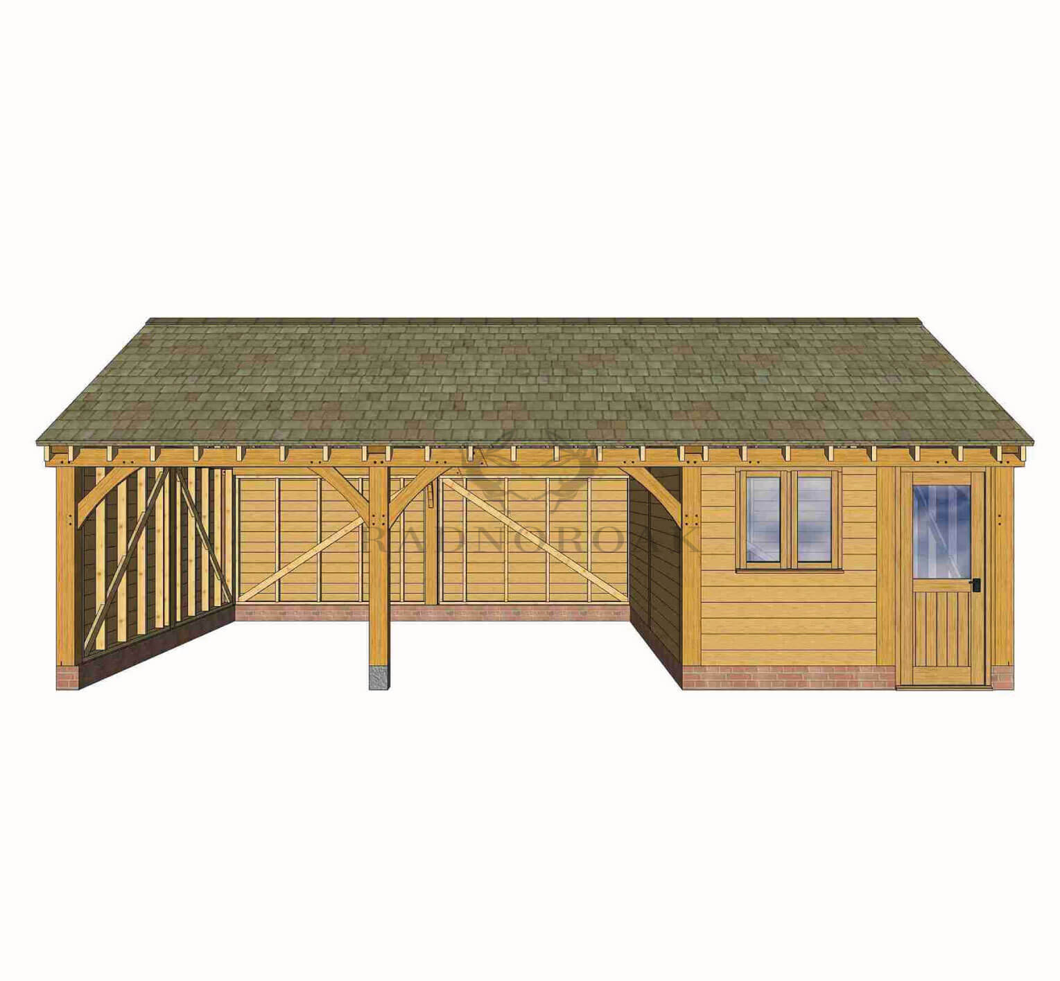 The 3-Bay Oak Carport & Workshop BYL3007 by Radnor Oak merges traditional craftsmanship with contemporary design. This complex offers 2 open fronted carports and 1 unique enclosed workshop. With an overall height lower than 4m, this practical building may not require local planning permission.