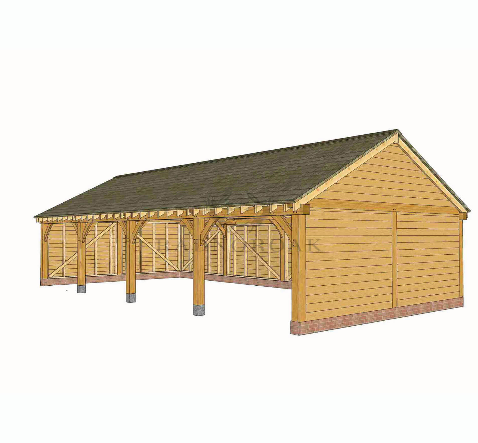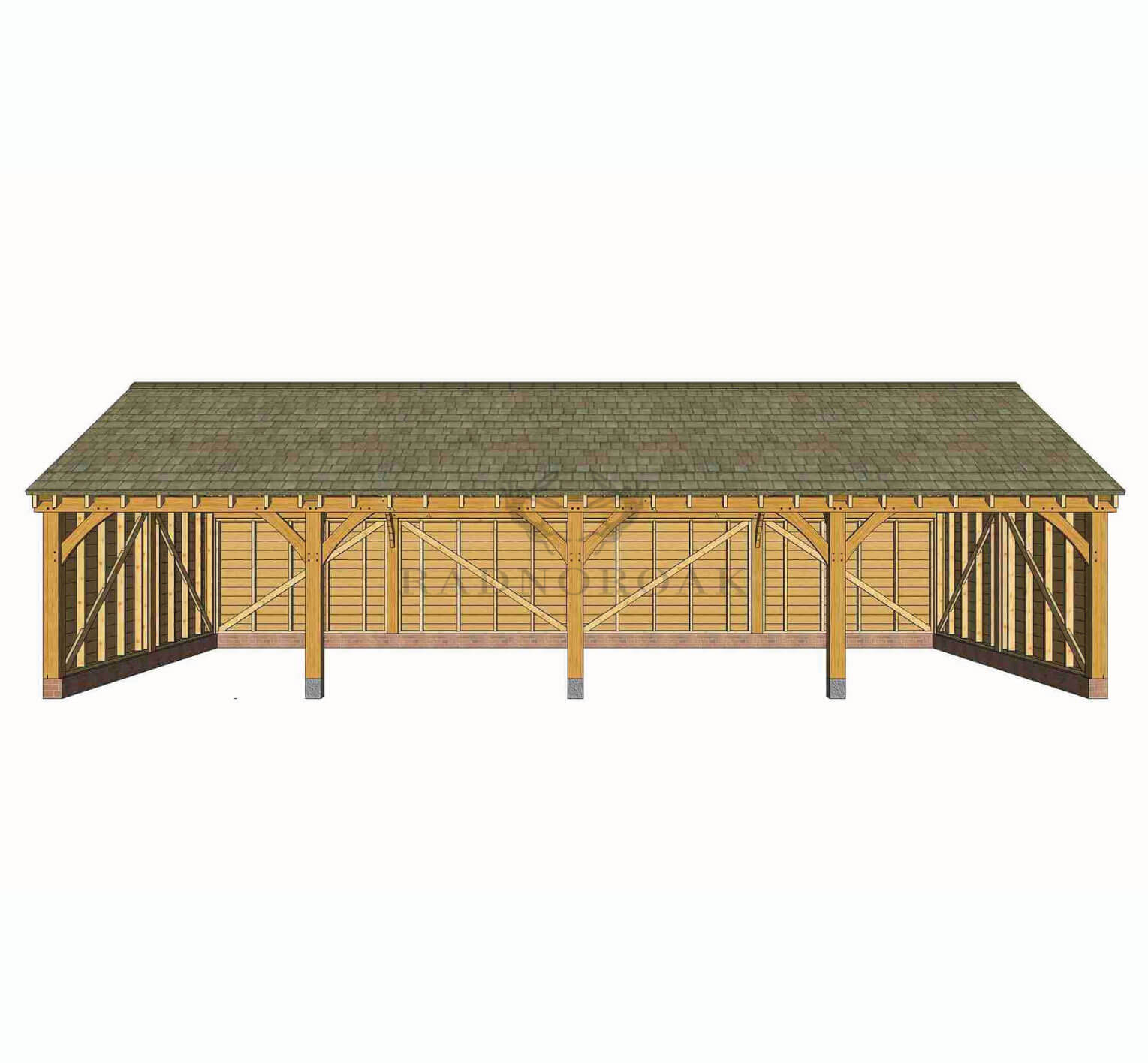 Oak Framed Car Port With 4 Open Fronted Bays.