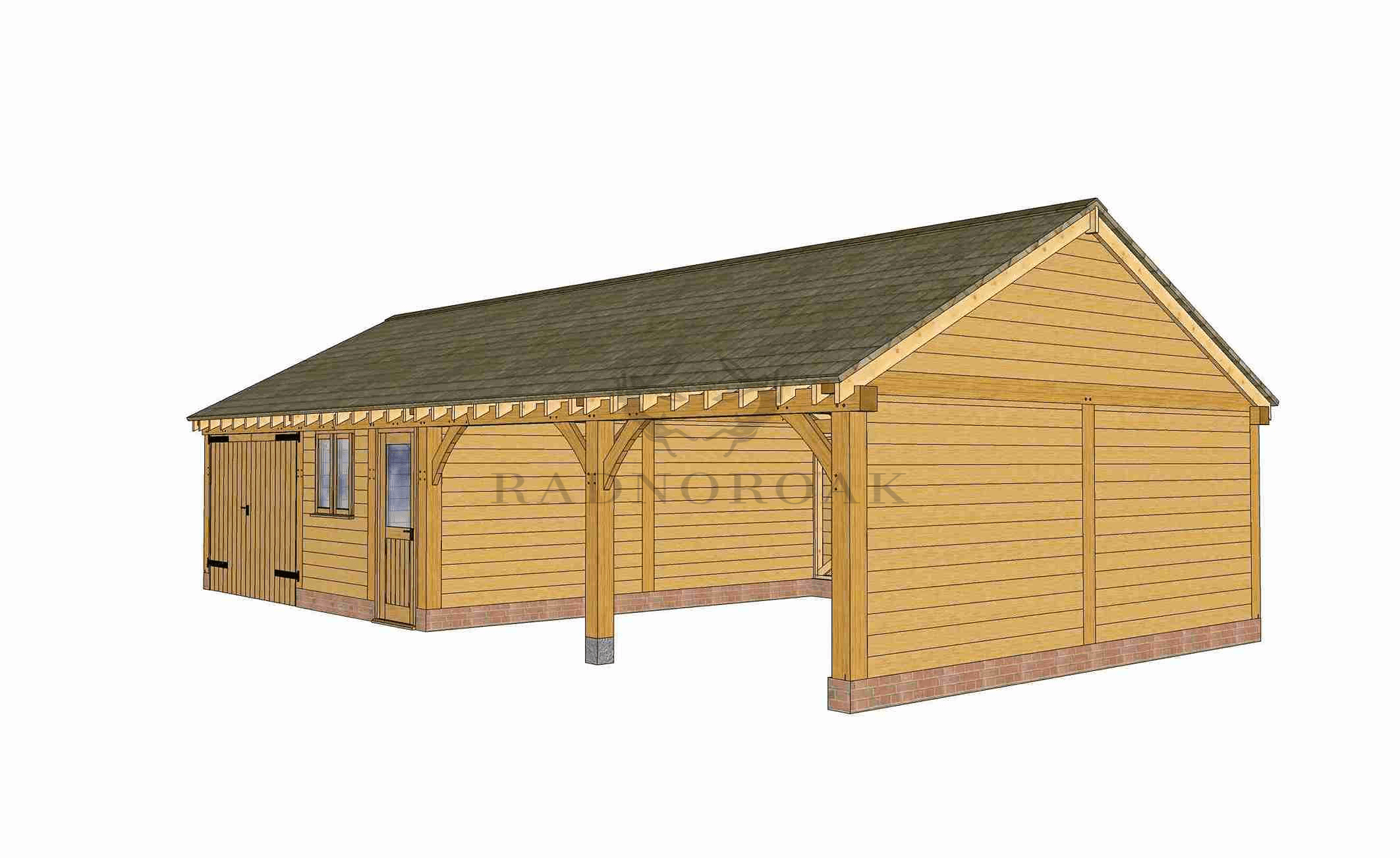 Introducing the 4 Bay Oak Garage with Workshop and Carport - a signature addition to your property by Radnor Oak. Established in 1990, Radnor Oak is the UK's gold standard for traditionally jointed oak and timber framed buildings.