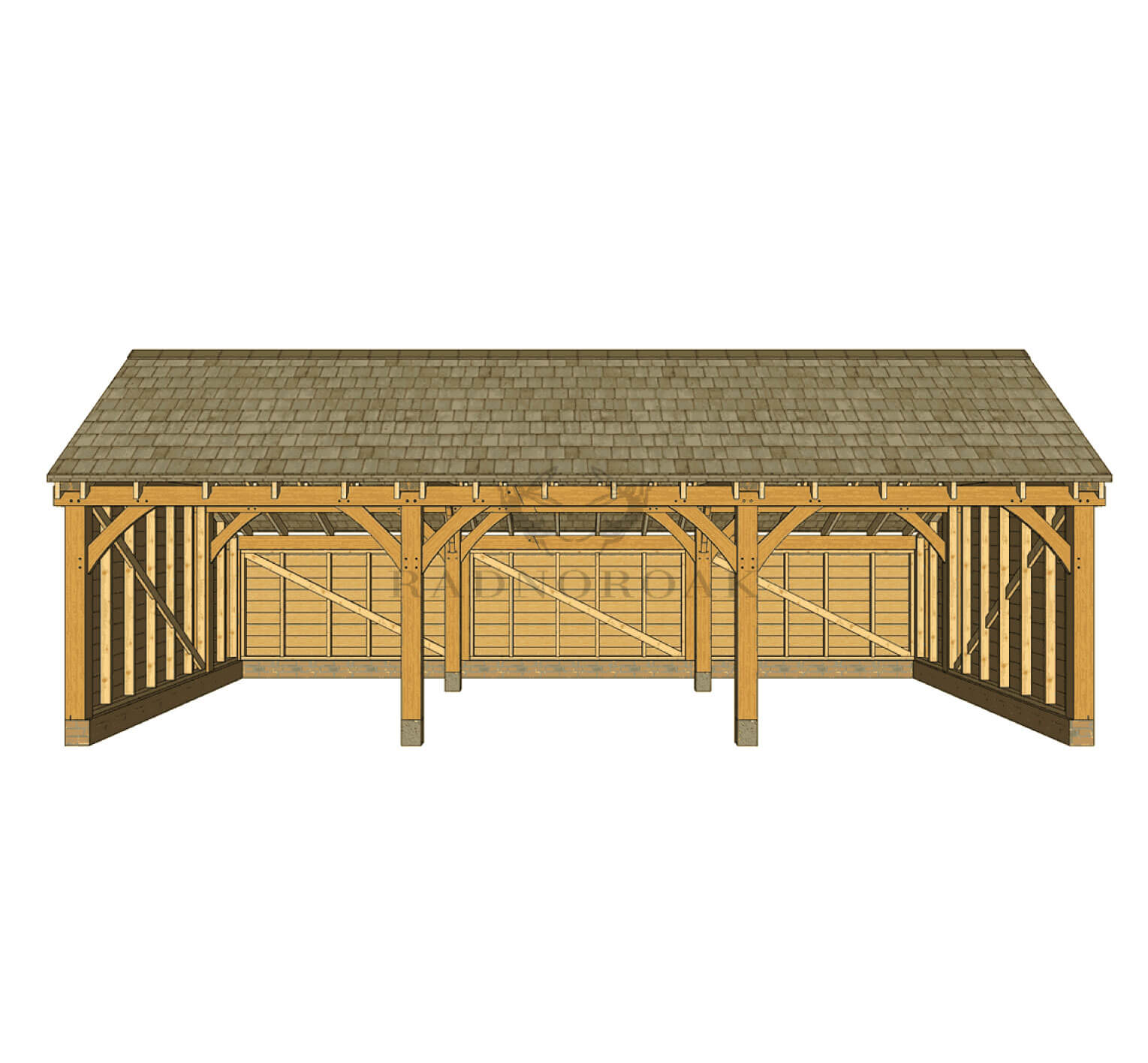 Crafted in our Mid-Wales workshop using premium oak and traditional mortice and tenon joints, this structure includes Radnor Oak’s signature chunky posts, knee braces, and featheredge cladding to the sides and rear. Designed to sit under 4 metres in height, it may not require planning permission.