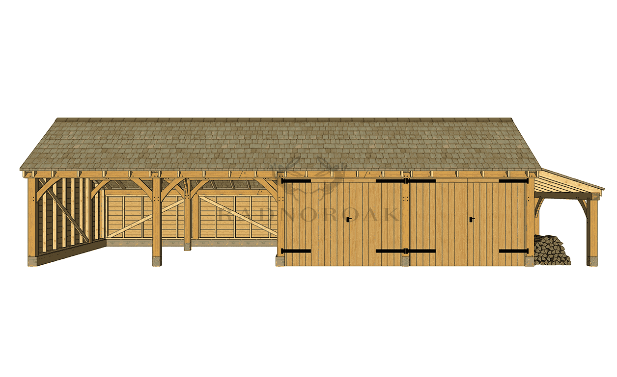 Radnor Oak brings you the marvel of a 4 Bay Oak Building, fully feature-packed to provide utmost functionality. This creation boasts a 2 Bay Carport and a 2 Bay Oak Garage, designed to keep your cars secure while adding elegance to your property. Don't miss the Oak Log Store that can be fixed to the left or right of the building.