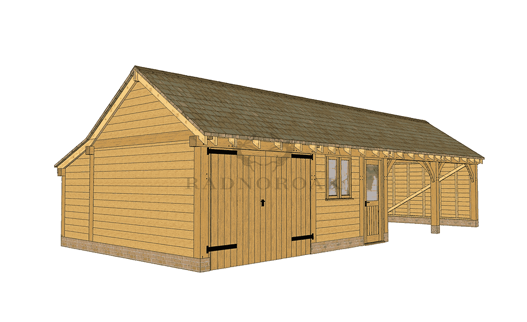 Introducing the 4 Bay Oak Garage, Workshop & Carport from Radnor Oak – Leaders in the UK market for traditionally jointed oak and timber framed buildings since 1990. Combining a garage, workshop and double carport in a single structure, this item showcases our unique design, appearance, and adaptability.
