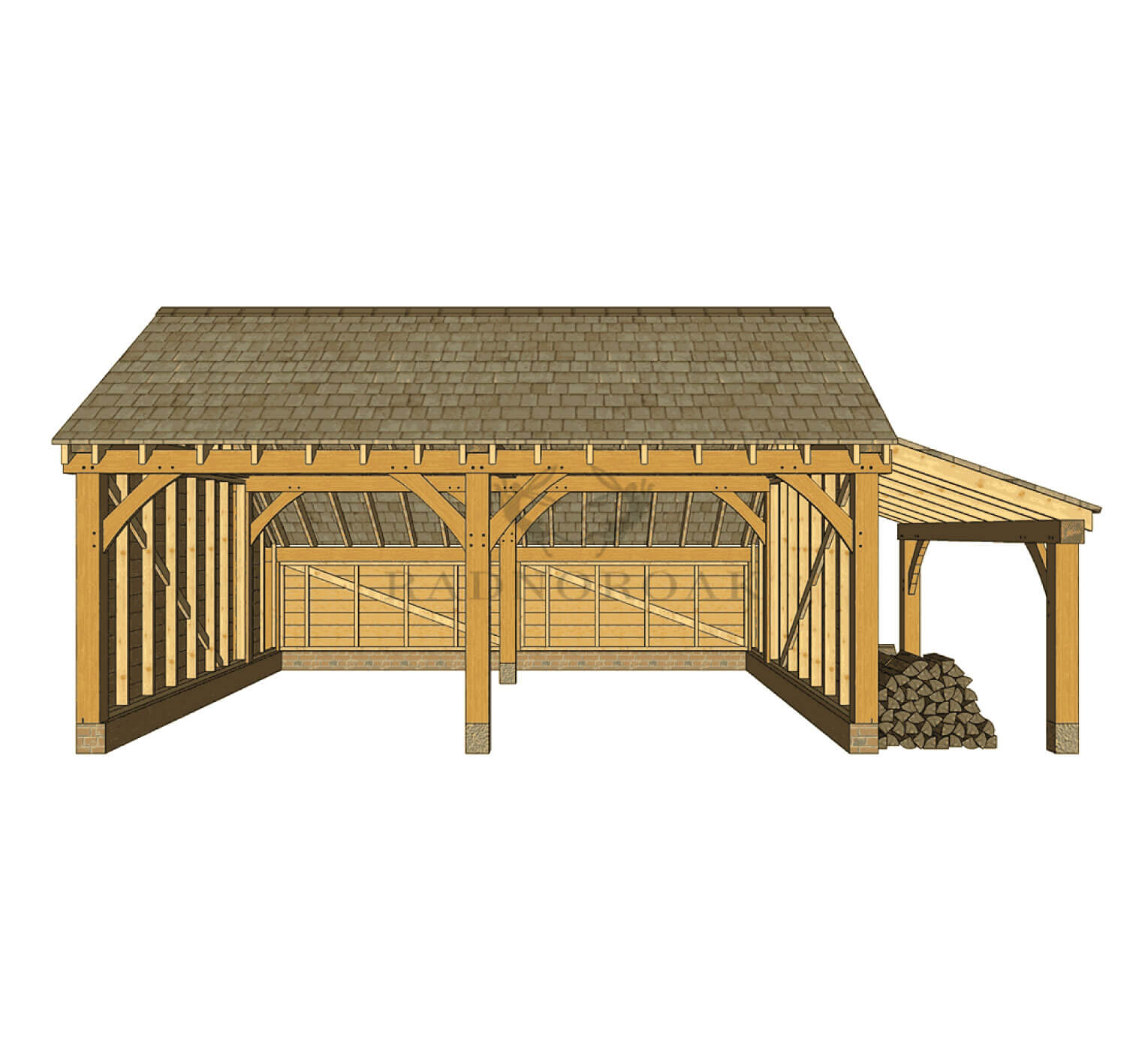 The Lucton 2 Bay Oak Carport & Log Store combines a solid oak carport with a functional log store.